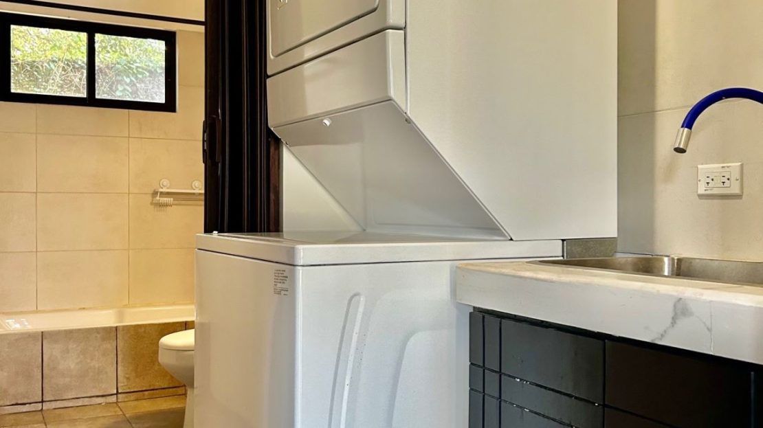 Laundry Room: Conveniently located and designed for practicality, the laundry room ensures that the home remains functional for both guests and residents. A quality stacking system washer/dryer, as well as sink for hand washables allows for seamless laundry tasks.