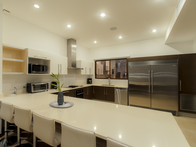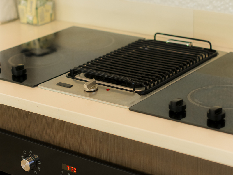 Quartz countertops, Electrolux fridge/freezer, indoor grill