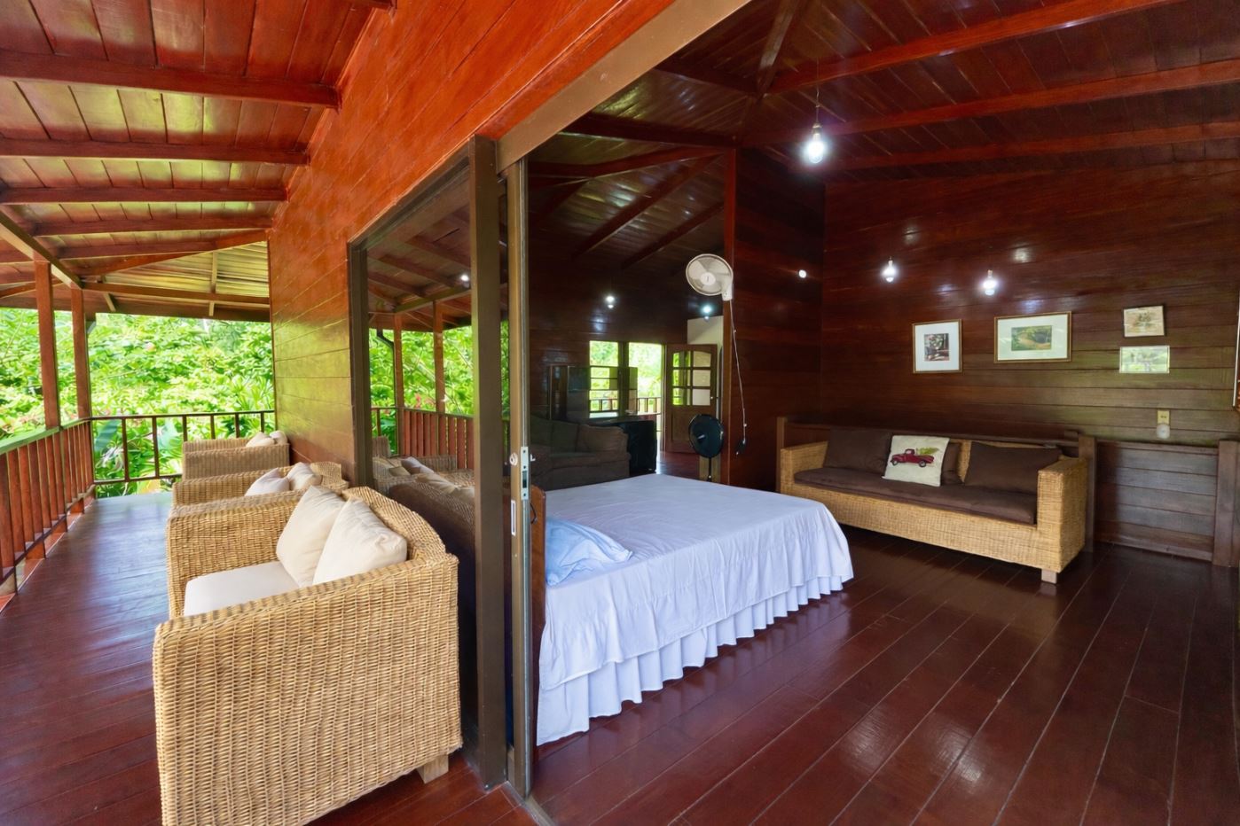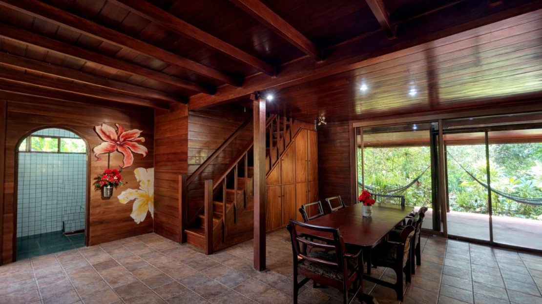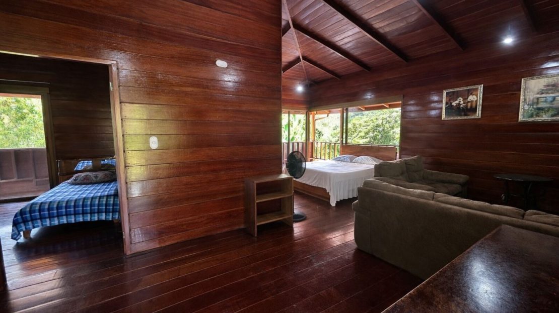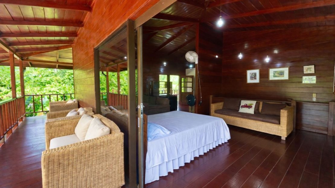 Posada Colonial features a Principal Lodge and an additional Guest Lodge, along with dedicated on-site management quarters. The Principal Lodge is an authentic Costa Rican–style two-level property designed to embody the essence of a true ecological lodge experience. Built using natural materials, including native hardwoods, it integrates hallmark eco-lodge features such as wraparound balconies, expansive covered terraces, open-air corridors, outdoor dining spaces, natural cross-ventilation through wide windows and French doors, and lush gardens incorporated directly into the living and common areas. The lodge includes three spacious bedrooms and three bathrooms, comfortably accommodating up to twelve guests.
