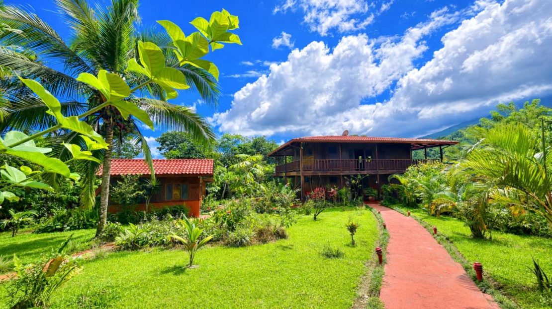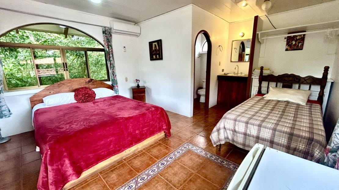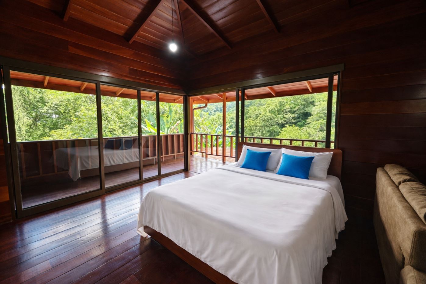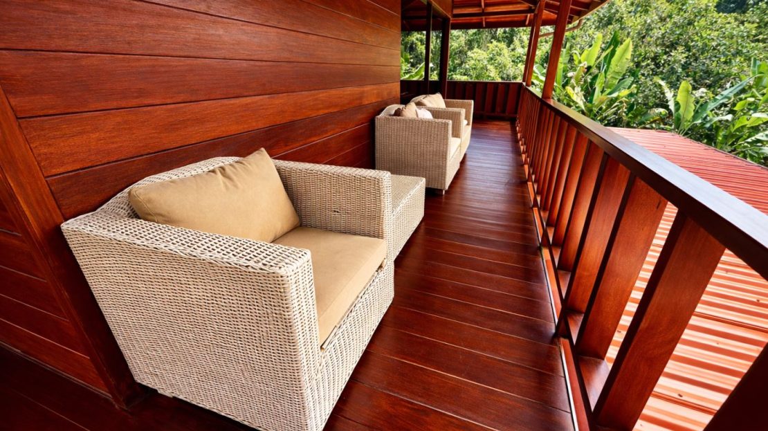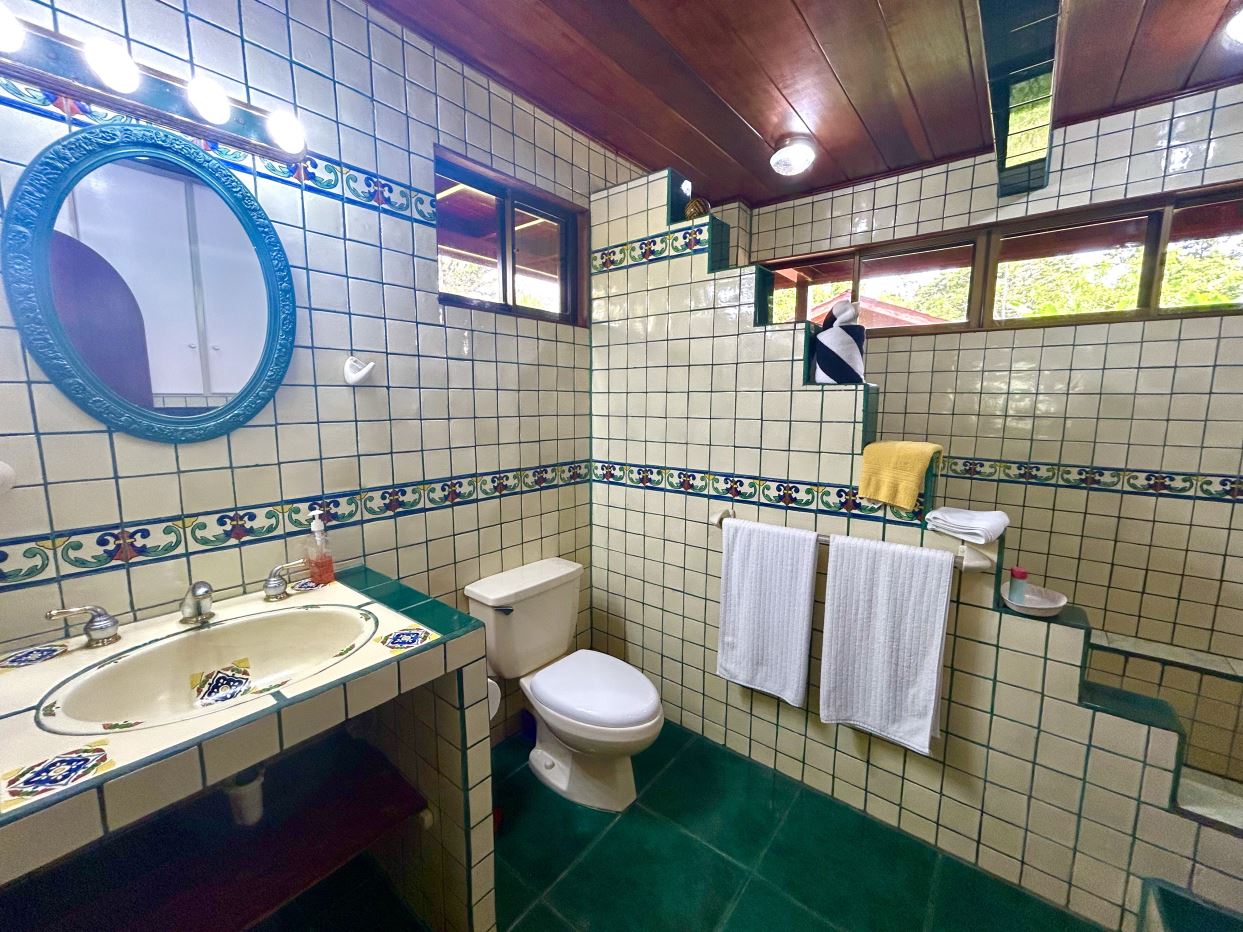 Posada Colonial features a Principal Lodge and an additional Guest Lodge, along with dedicated on-site management quarters. The Principal Lodge is an authentic Costa Rican–style two-level property designed to embody the essence of a true ecological lodge experience. Built using natural materials, including native hardwoods, it integrates hallmark eco-lodge features such as wraparound balconies, expansive covered terraces, open-air corridors, outdoor dining spaces, natural cross-ventilation through wide windows and French doors, and lush gardens incorporated directly into the living and common areas. The lodge includes three spacious bedrooms and three bathrooms, comfortably accommodating up to twelve guests.