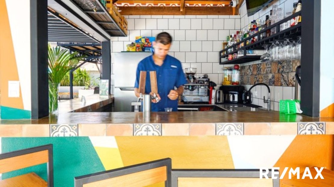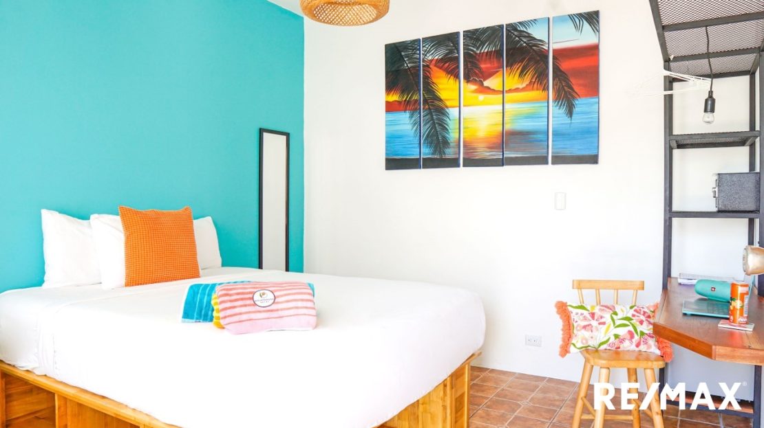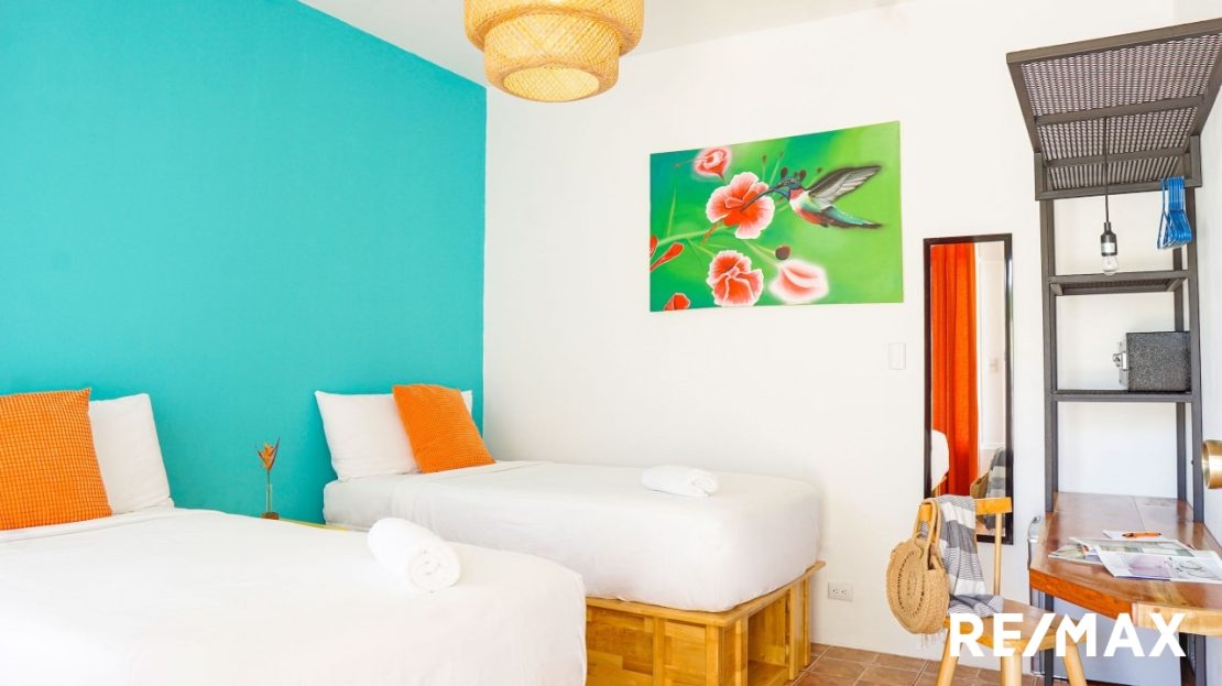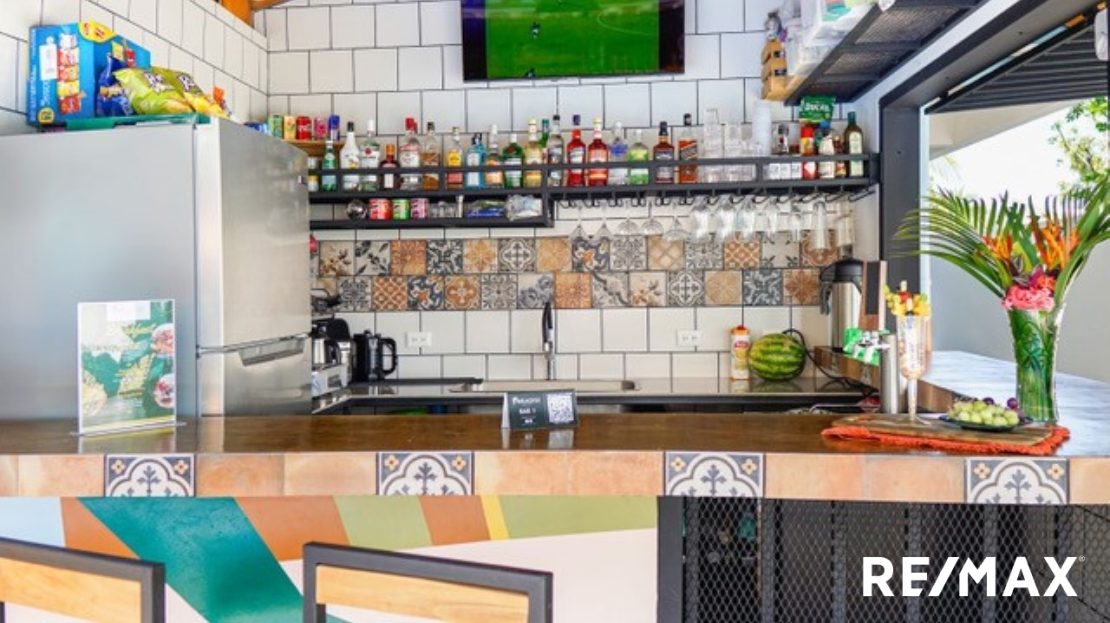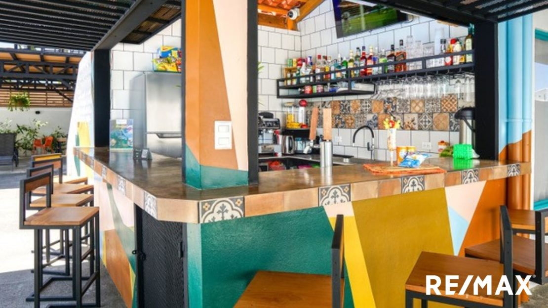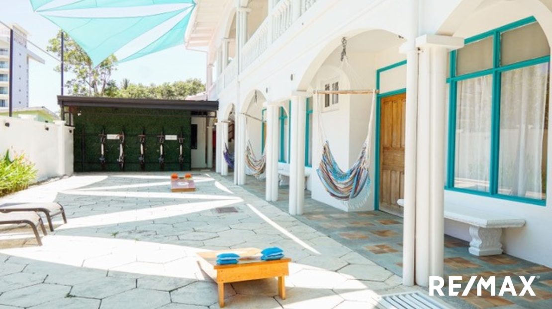 This well known hotel is located in heat of Jaco Beach on the main strip. It hosts 18 rooms among 2 levels along with a reception area that fronts the main street Pastor Diaz. In addition, there is an owners studio apartment. This hotel has been meticulously cared for and newly renovated inside and out and features a mural by an international artist sponsored through Artify Jaco art foundation. Also included are high quality American-style beds and lots of extra touches that make sleeping away from home easier like clocks with built-in phone chargers, Bluetooth speakers and white noise machines. The property includes a common pool, solar hot water system, cafe/bar, 2-story roofed rancho and sail awnings over the courtyard.