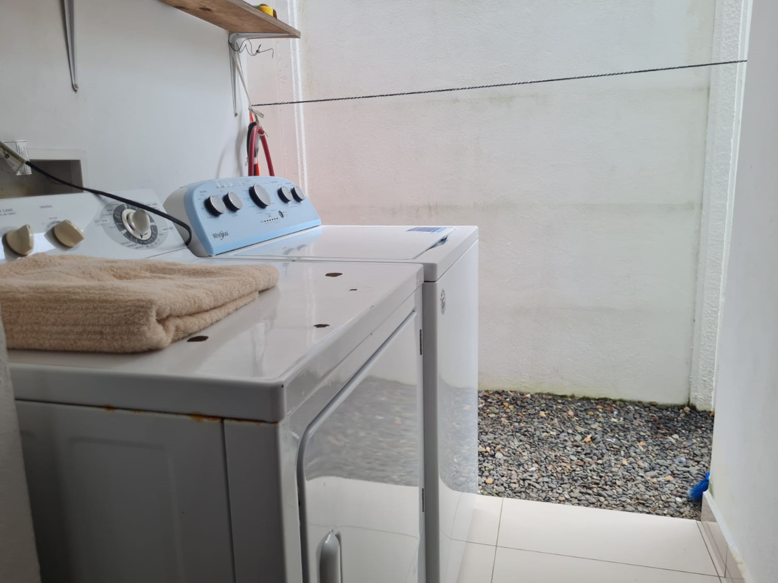 Es una acogedora casa de tres habitaciones y dos baños en un condominio céntrico y tranquilo.