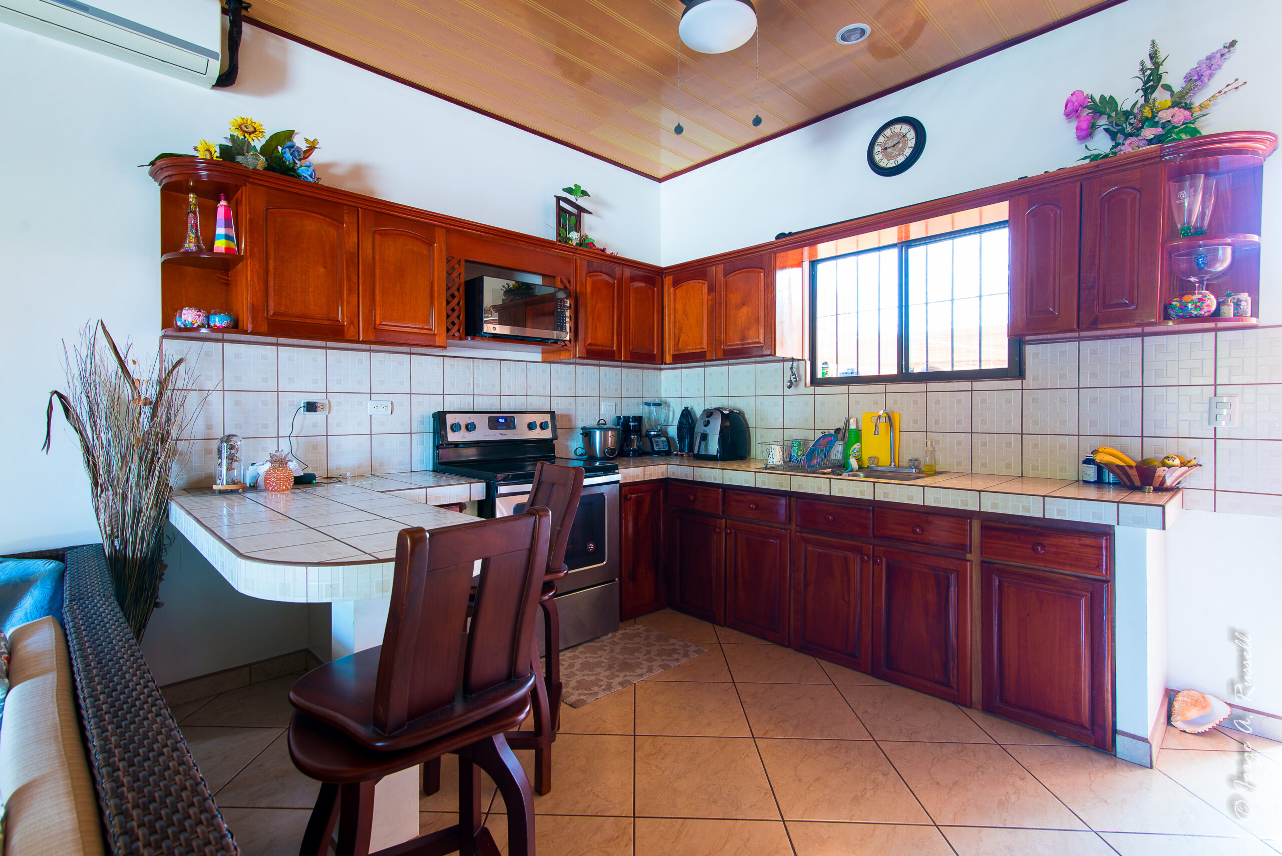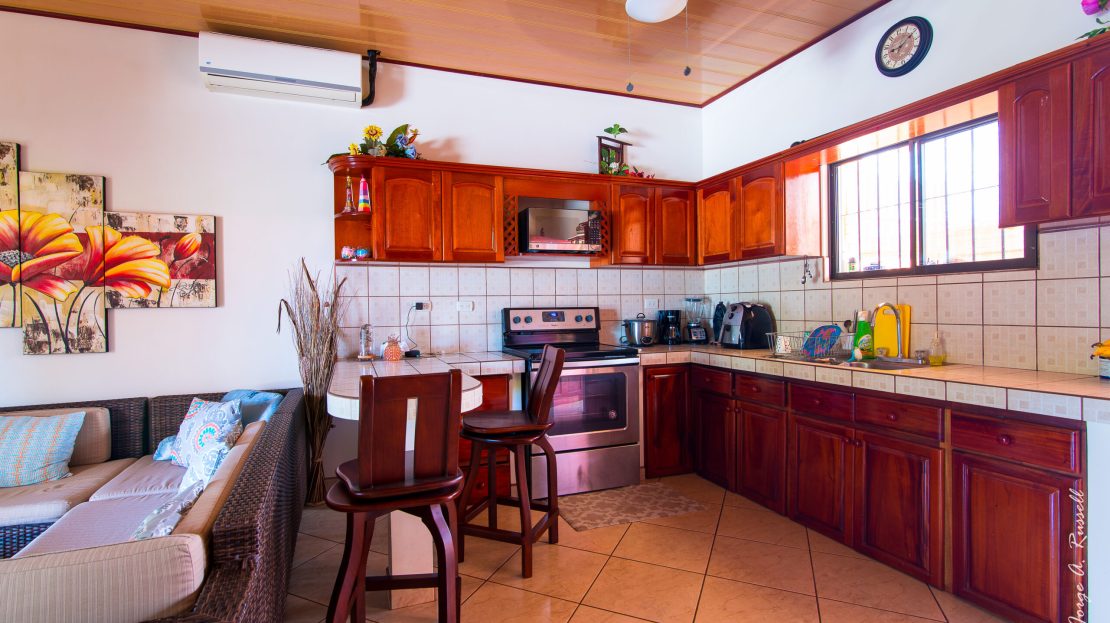 Jaco beach gated 3-bedroom house. Lovely new house in a condominium, very safe and low HOA; it has common areas with a pool and playground, and the house has covered parking for two cars and a small backyard and side access; it is of solid construction and is like new, it is sold unfurnished and yes, with equipped kitchen,