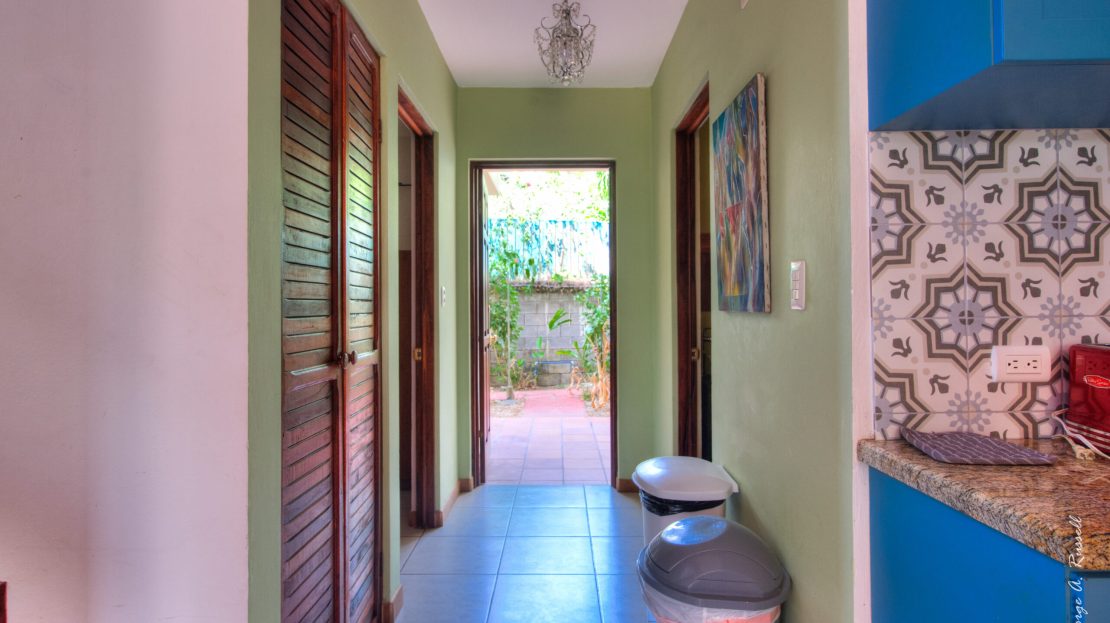 La casa adosada de tres dormitorios en el centro de Jaco Beach está ubicada cerca de la serena costa y ofrece fácil acceso a la vibrante avenida principal. Ingrese para experimentar un ambiente cálido y acogedor, con la suave brisa del mar fluyendo a través de las ventanas abiertas.