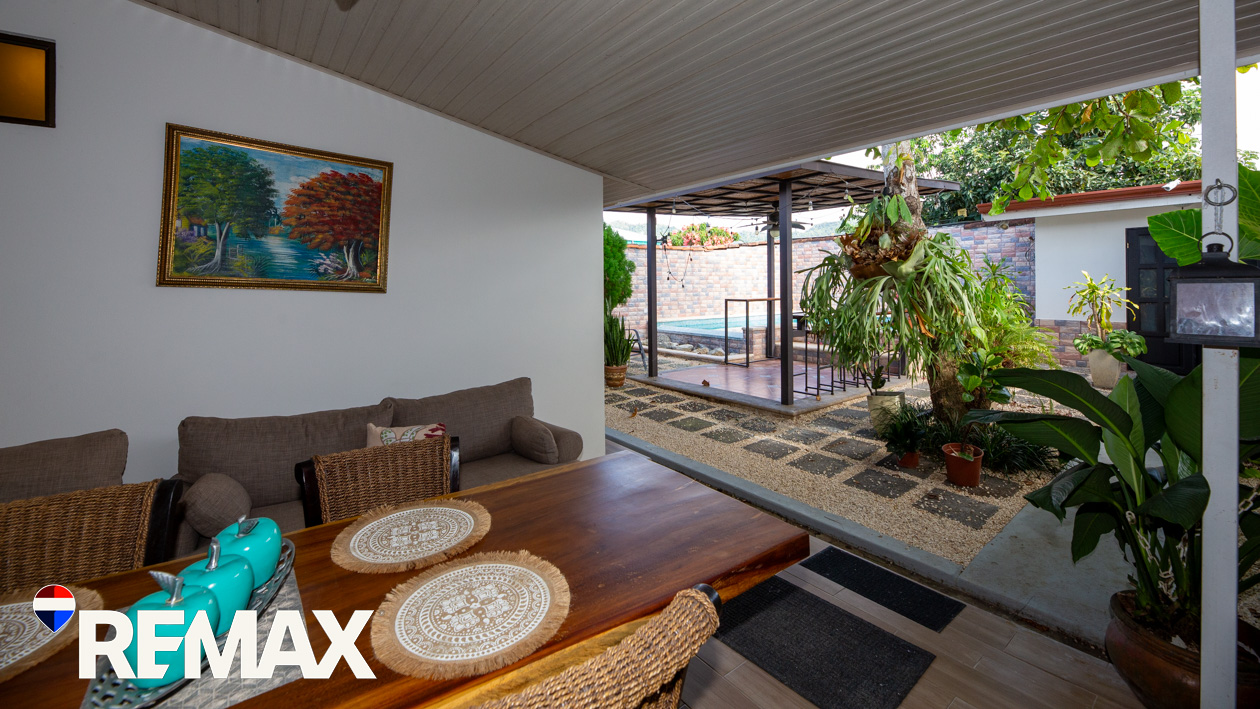 One of the standout features is the spacious covered outdoor living area, perfect for enjoying Costa Rica’s tropical climate year-round. The property also includes a large private garage, a private pool, and even an indoor jacuzzi tub. It has been well cared for and maintained, reflecting pride of ownership throughout.