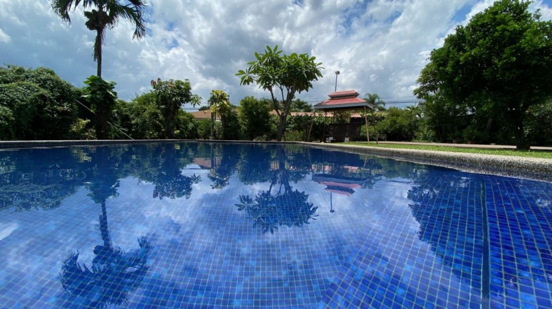 Outdoor terrace facing the pool