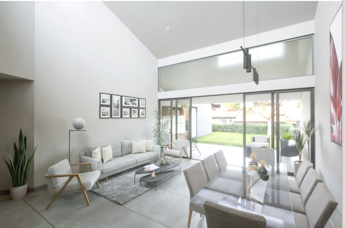 •Amplia sala con cielos altos, diseñada para disfrutar de espacios abiertos y luminosos.