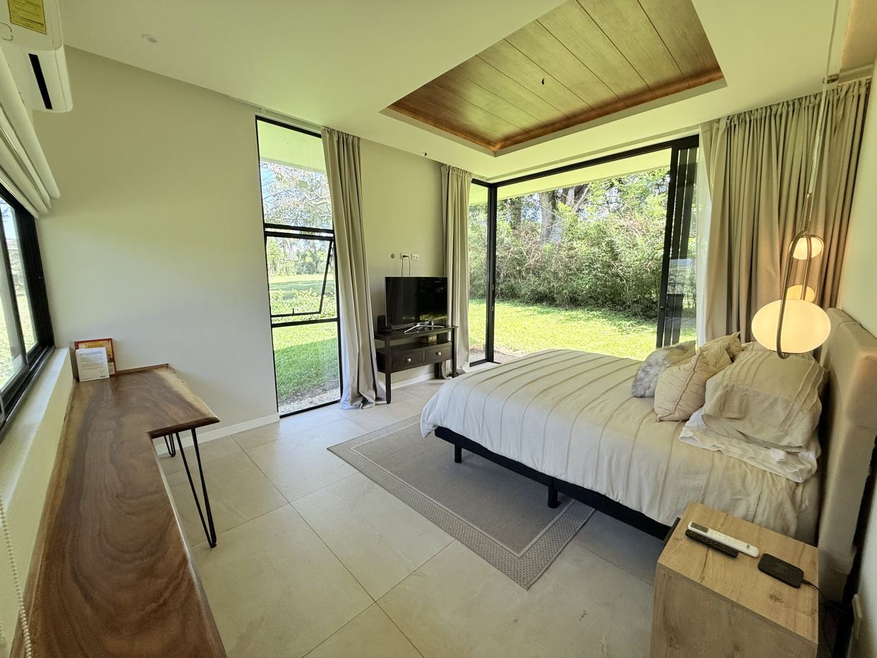 Welcome to an extraordinary residence in the prestigious Hacienda Los Reyes, one of Costa Rica’s most sought-after gated communities. This single-story modern home, completed in 2024, blends contemporary architecture with luxurious living, overlooking a lush 9-hole golf course.