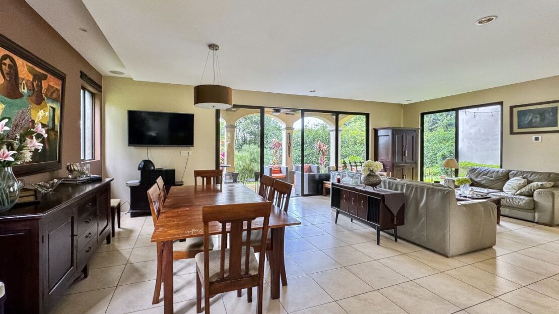 Welcome to Casa Guacima Breezes 5 bedroom home for sale in Guacima Costa Rica, very close to the community of Los Reyes, Route 27, and 25 minutes from Escazu, San Jose. Nestled in a small gated community with 4 homes, Casa Guacima Breezes is a two-level, Mediterranean-design home boasting a large open kitchen design and ample social areas for lounging and entertainment.