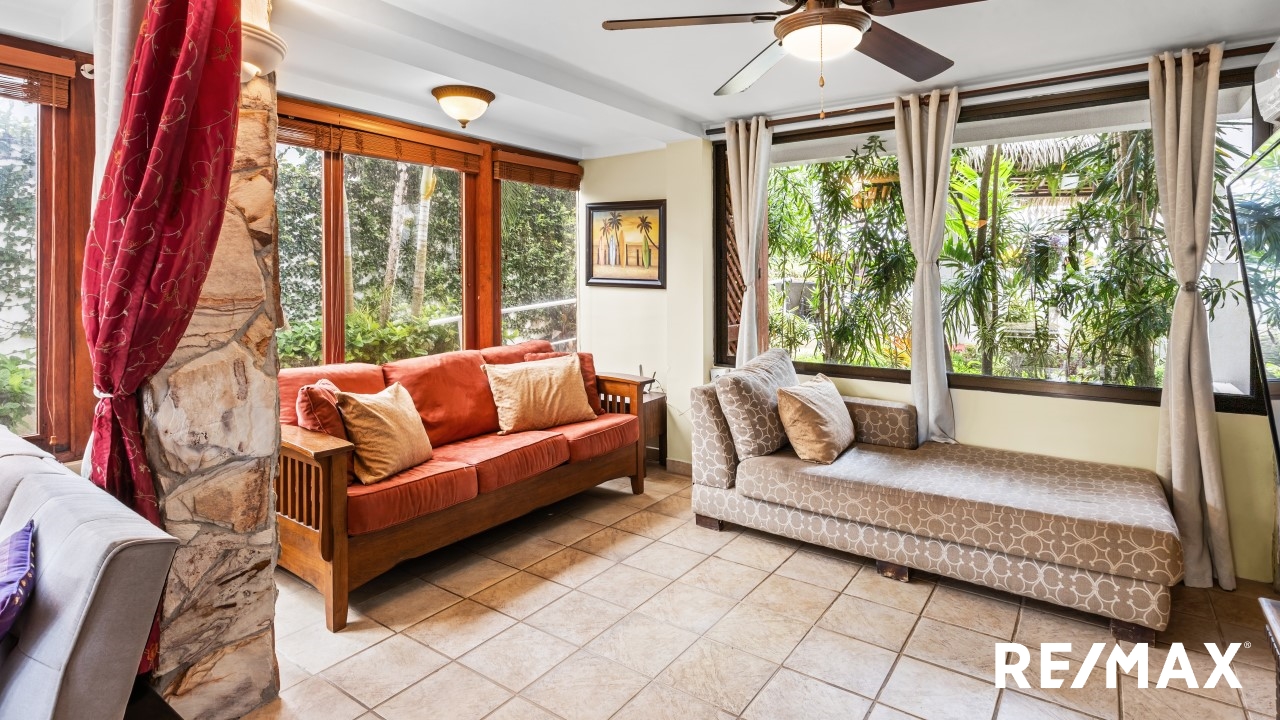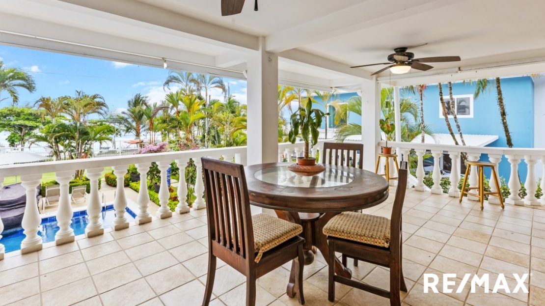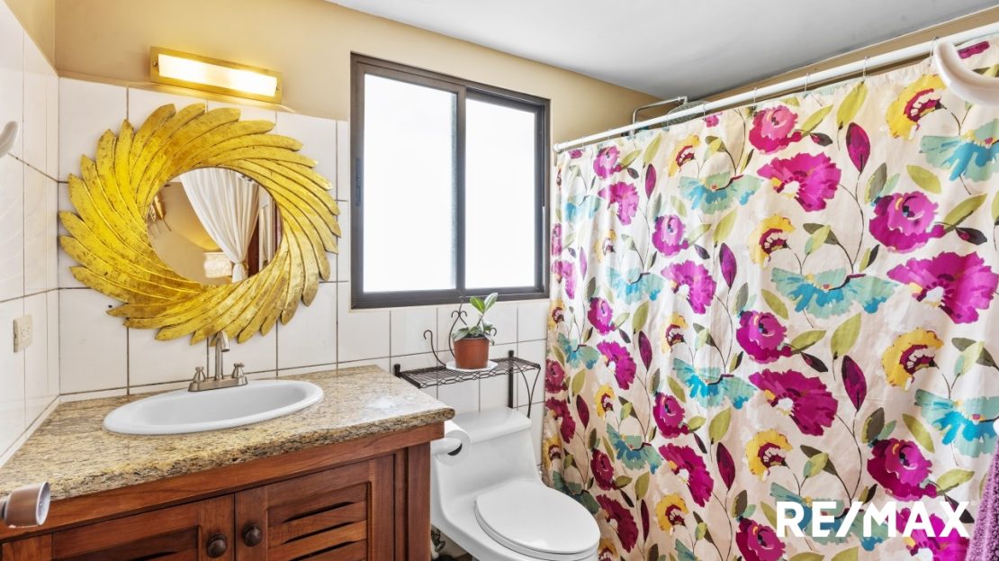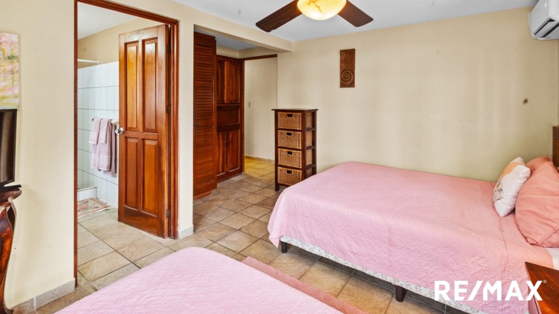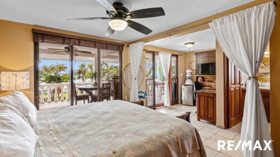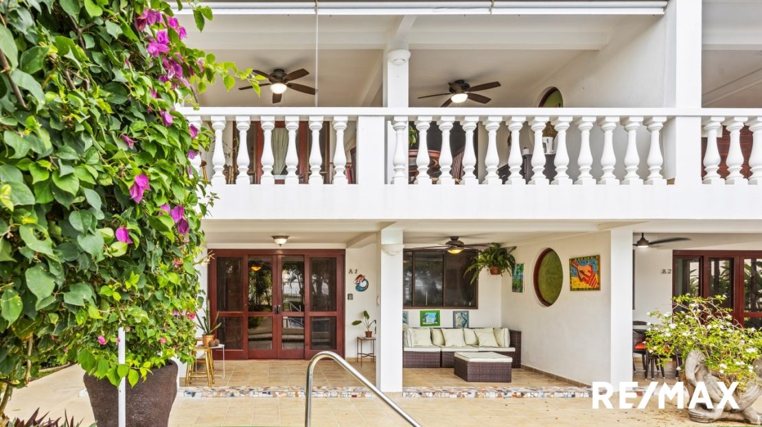 La Paloma Blanca Oceanfront Condo Status : Exclusive | Costa Rica MLS number: 80764Welcome to La Paloma Blanca A-1, a magnificent direct oceanfront condo located on the Sound end of Jaco Beach. This exquisite residence offers 2 bedrooms and 3 bathrooms, spanning approximately 2,000 square feet of luxurious living space. The main level features a spacious living area, a modern kitchen, and a full bathroom, while the two bedrooms are nestled on the second floor.
