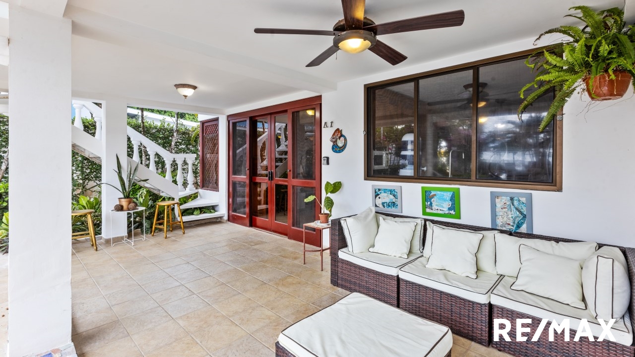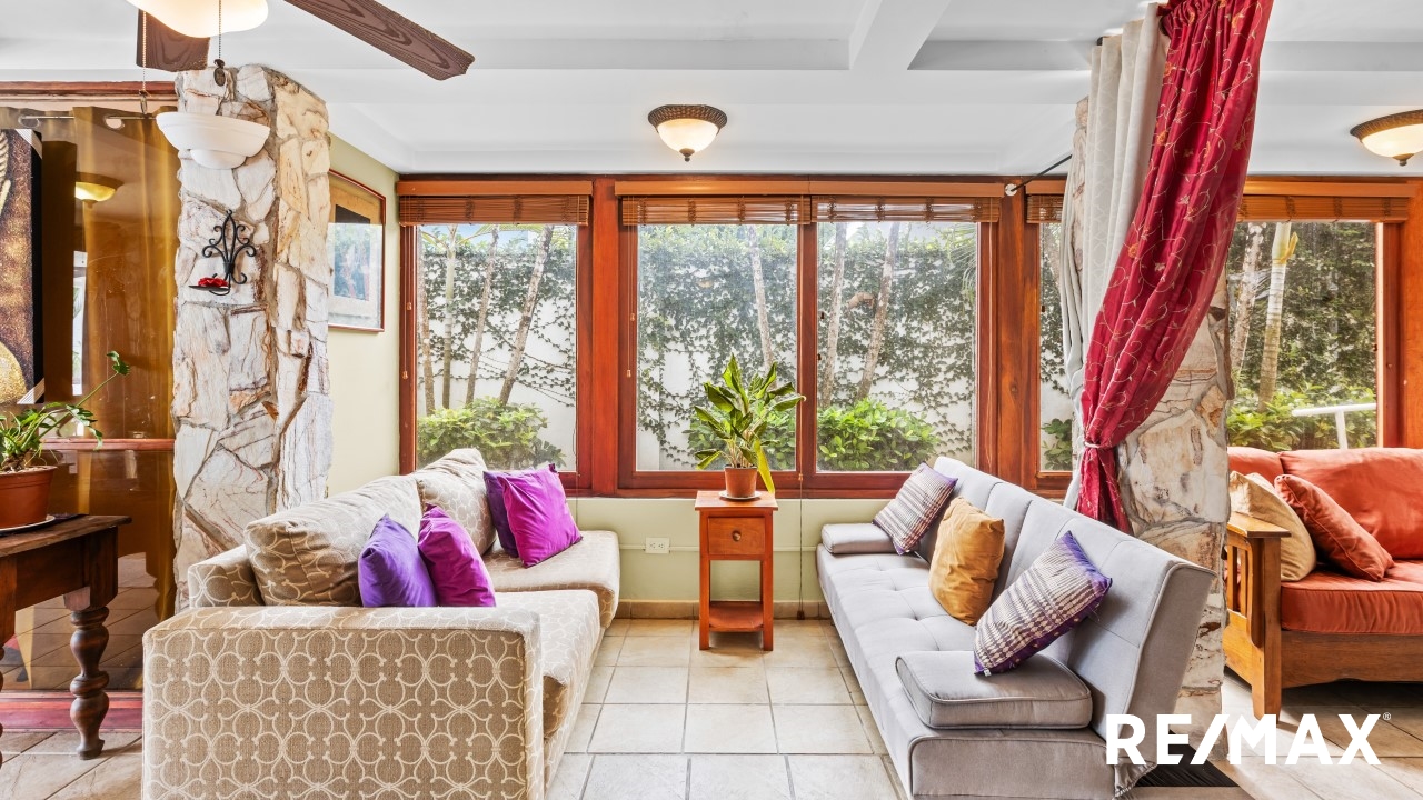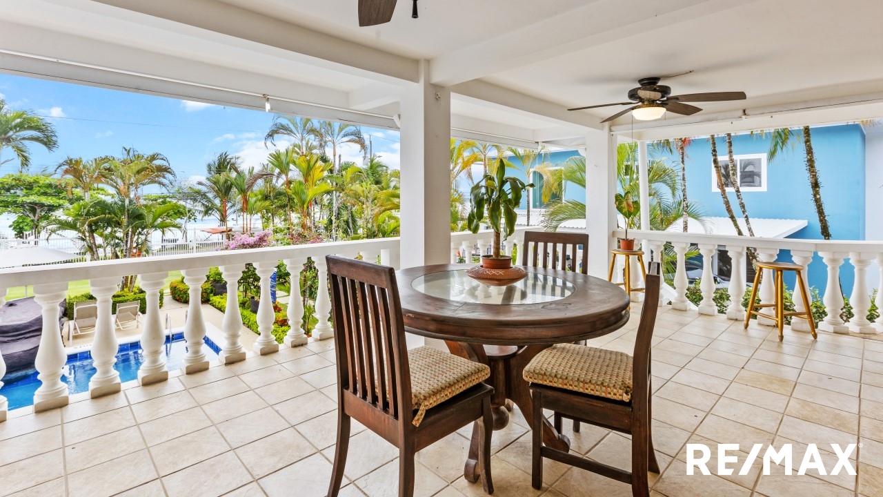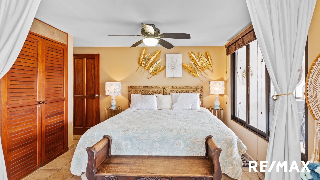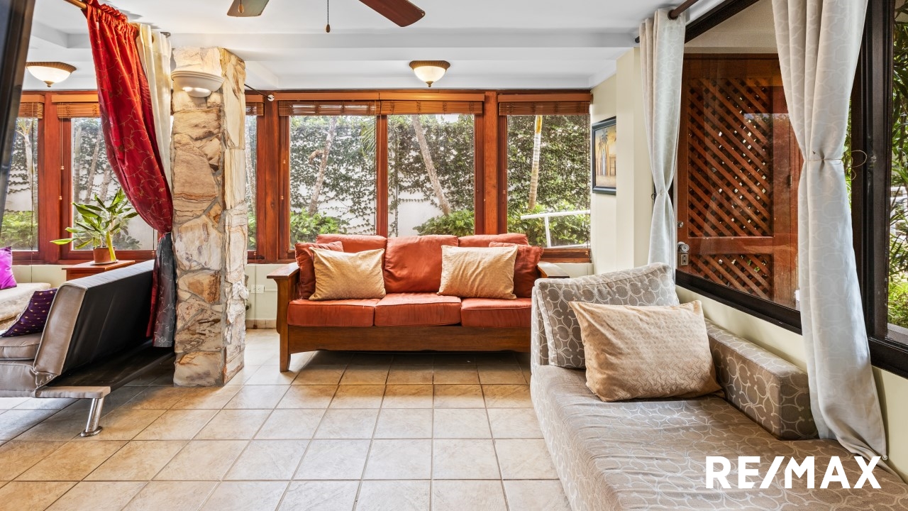 La Paloma Blanca Oceanfront Condo Status : Exclusive | Costa Rica MLS number: 80764Welcome to La Paloma Blanca A-1, a magnificent direct oceanfront condo located on the Sound end of Jaco Beach. This exquisite residence offers 2 bedrooms and 3 bathrooms, spanning approximately 2,000 square feet of luxurious living space. The main level features a spacious living area, a modern kitchen, and a full bathroom, while the two bedrooms are nestled on the second floor.