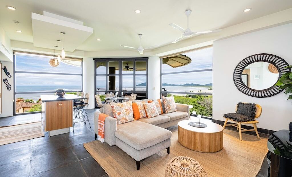 La Perla 5-4 is a fantastic ocean-view property located a short walk to the beach and town. The three-bedroom and three-bath unit is a spacious 2200 sq feet and features large spacious terraces and floor-to-ceiling windows with breathtaking views from Playa Langosta to Playa Grande. This is the premier unit to enjoy beautiful sunsets or check the surf conditions.