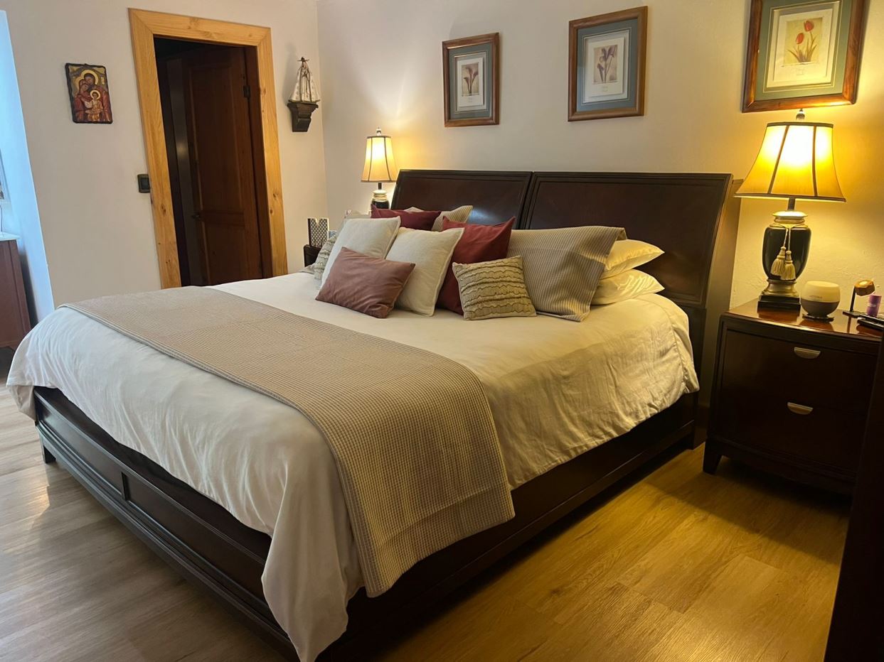 La propiedad cuenta con 4 habitaciones con closets, uno como gimnasio personal, lWaking closet y baño privado en el dormitorio principal, con espacio para cama King Size Doble Piso láminado en la primera planta, cochera con portón eléctrico y bodega, oficina, terraza amplia, Alacena, sala comedor integrado en un solo espacio, con varios ambientes,, con un rincón de paz en el cuarto principal, cuarto de servicio independiente con baño completo, patio con área verde. 500 m2 de terreno y una construcción de 320 m2. En 2 plantas. 100% block