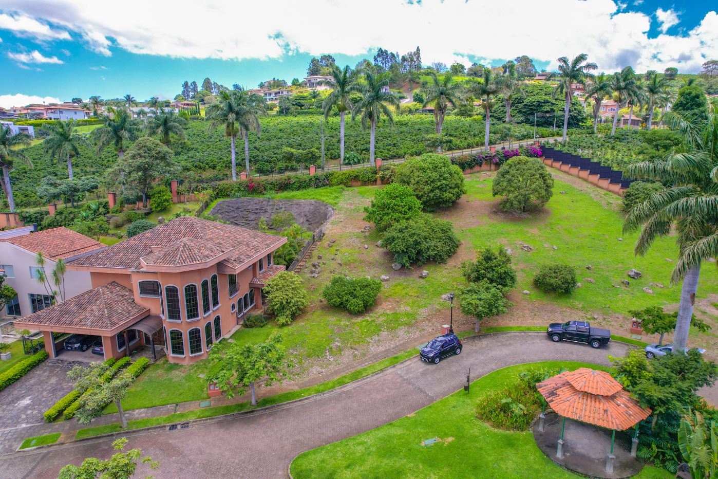 La topografía del terreno es inclinada, lo que permite un diseño arquitectónico único y aprovechable, con vistas espectaculares al Cerro La Carpintera y el Valle Central. El condominio cuenta con seguridad 24/7, calles adoquinadas y electrificación subterránea, garantizando un entorno seguro y estéticamente impecable.