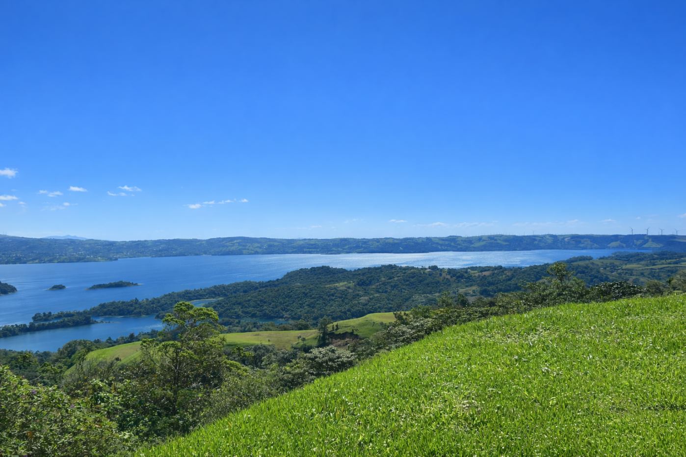 Within this composed setting, this 7,090.30 m² (1.75 acres) lakeview lot offers an exceptional opportunity to build a private residence or estate-style home. Located in El Aguacate, the property overlooks Santa Elena Island and enjoys expansive views across Lake Arenal toward Arenal Volcano and the surrounding rolling hills. Offered at $210,000, the lot combines elevation, scale, and a sense of openness rarely found within a gated lake community.