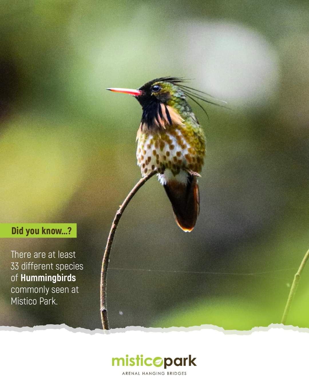Místico Park es un destino popular para ecoturistas y amantes de la naturaleza que desean experimentar la biodiversidad de la selva tropical de Costa Rica. Los visitantes suelen observar una variedad de animales, incluidos pájaros, monos, perezosos y reptiles. Además de los puentes colgantes, el parque también ofrece visitas guiadas, observación de aves y recorridos nocturnos para explorar la vida silvestre nocturna de la zona.