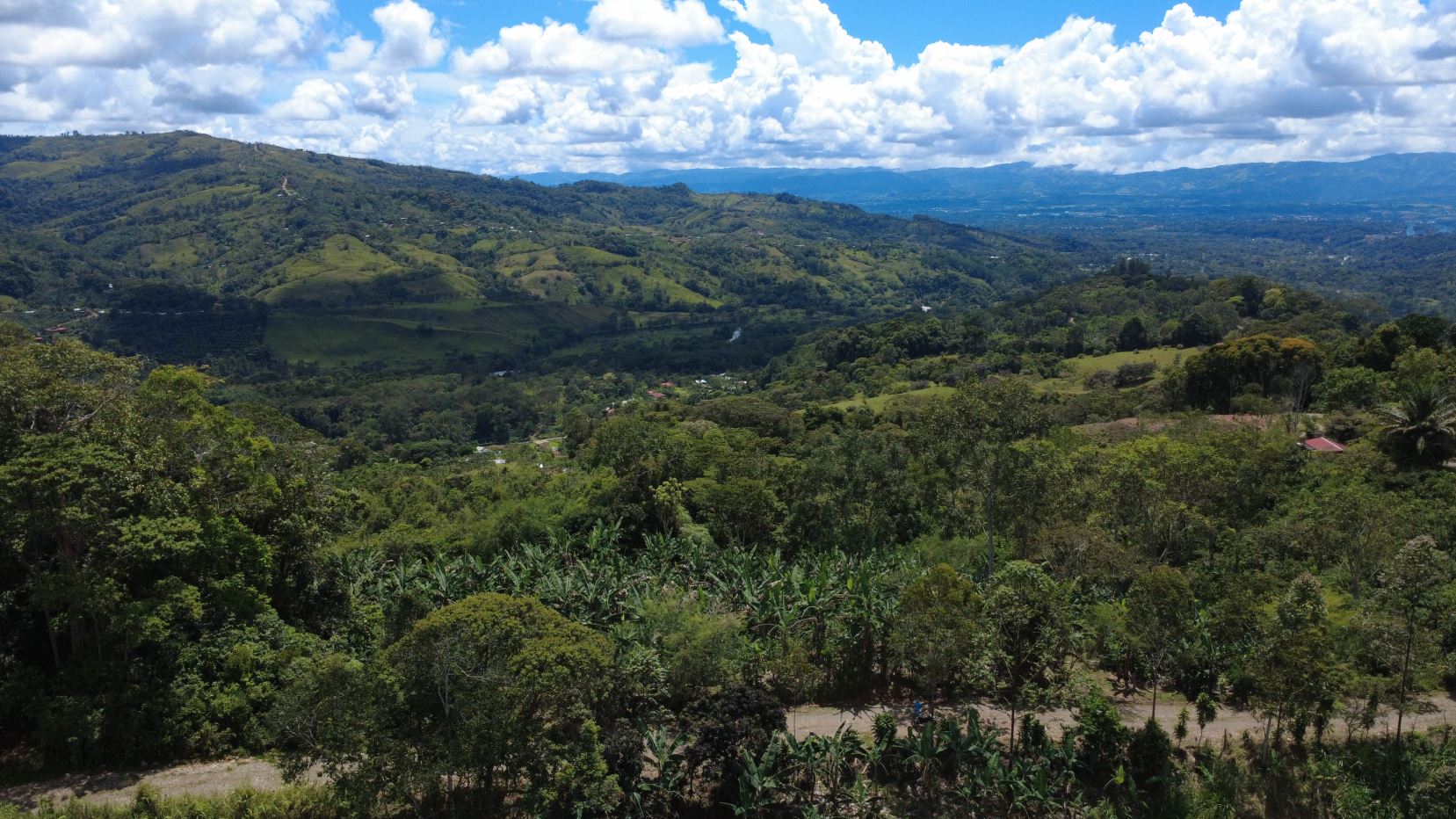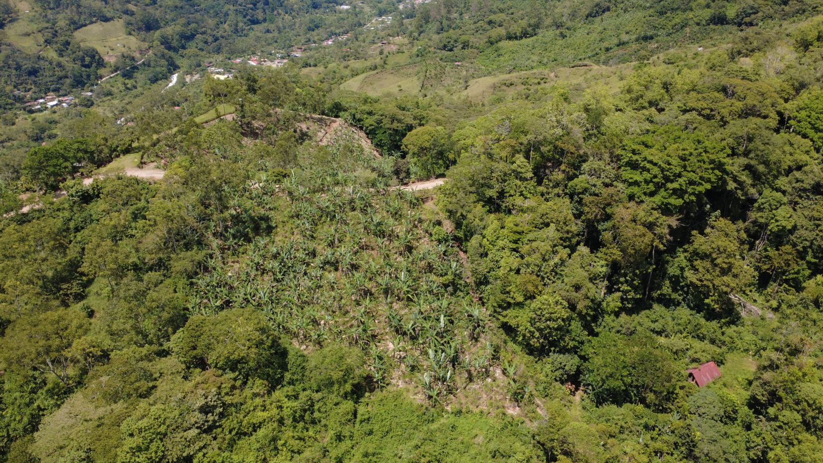 The land spans 5,032 m² and is currently planted with coffee and banana trees, surrounded by other coffee farms, cattle pastures, and productive countryside.Its elevated position provides panoramic views on both sides of the ridge, making it an ideal location for a retirement home, cabin, or eco-living project.