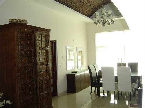 This home is a beautiful mix of contemporary finishes and classic elegance. It features plenty of space with 5 bedrooms and a possible sixth or office or the perfect service bedroom. Added amenities includes a very nicely laid out living and dining area that leads to an outside terrace area with fireplace, an inviting solar heated pool and jacuzzi. There is also a modern kitchen with granite finishes, all appliances are provided and large master bedroom with large bathroom equiped with jacuzzi. This home is located in the very secure 24 patrolled community of Hacienda Los Reyes which also offers an additional club/tennis/gym/pool/golf membership.