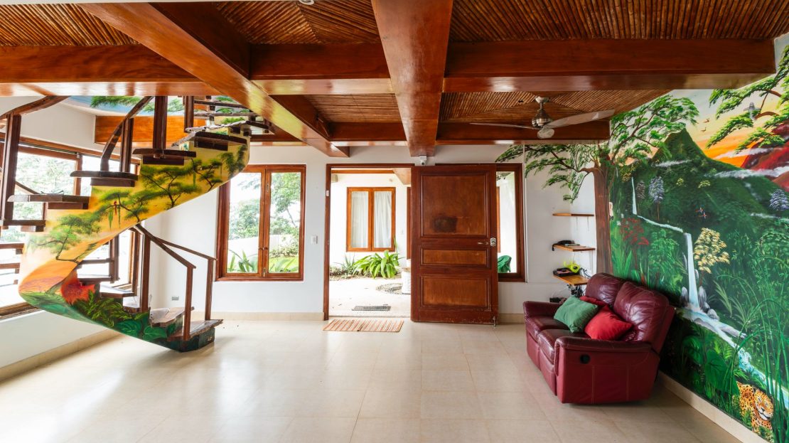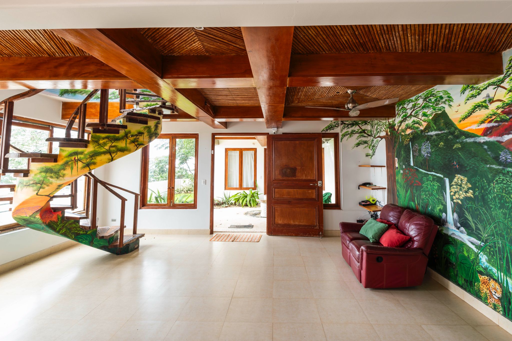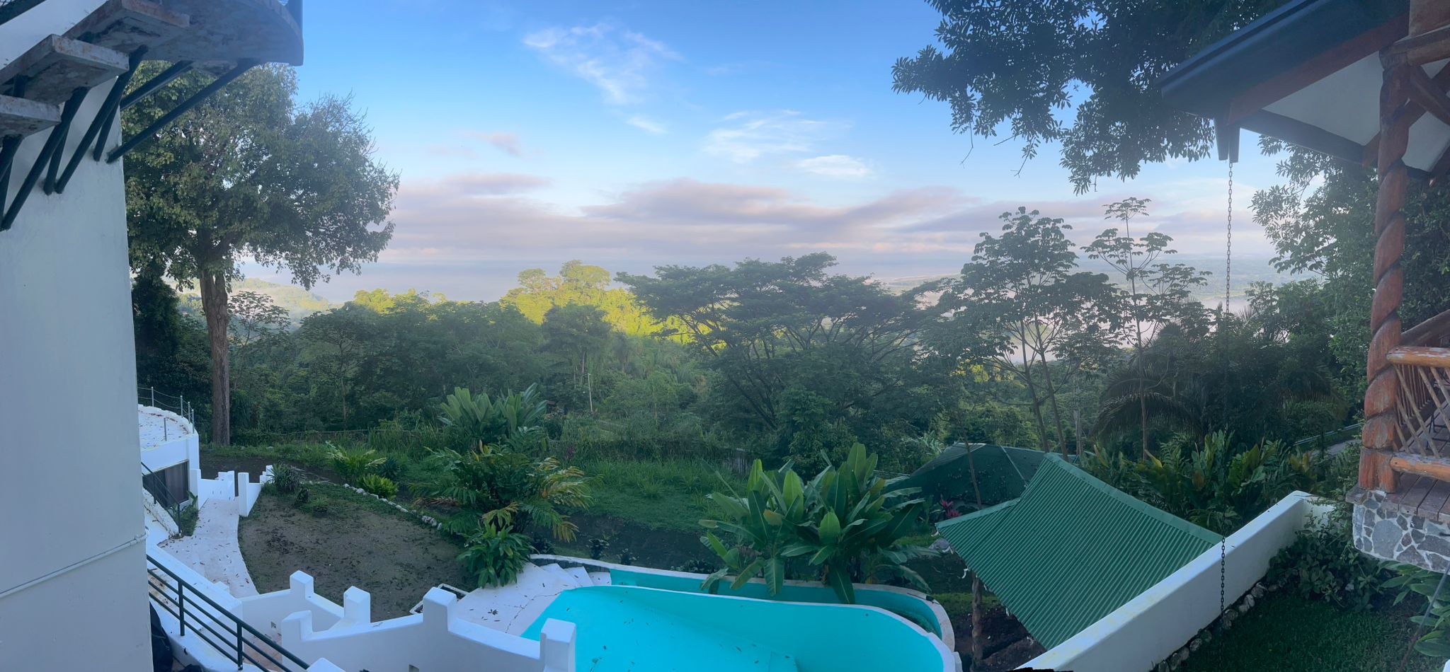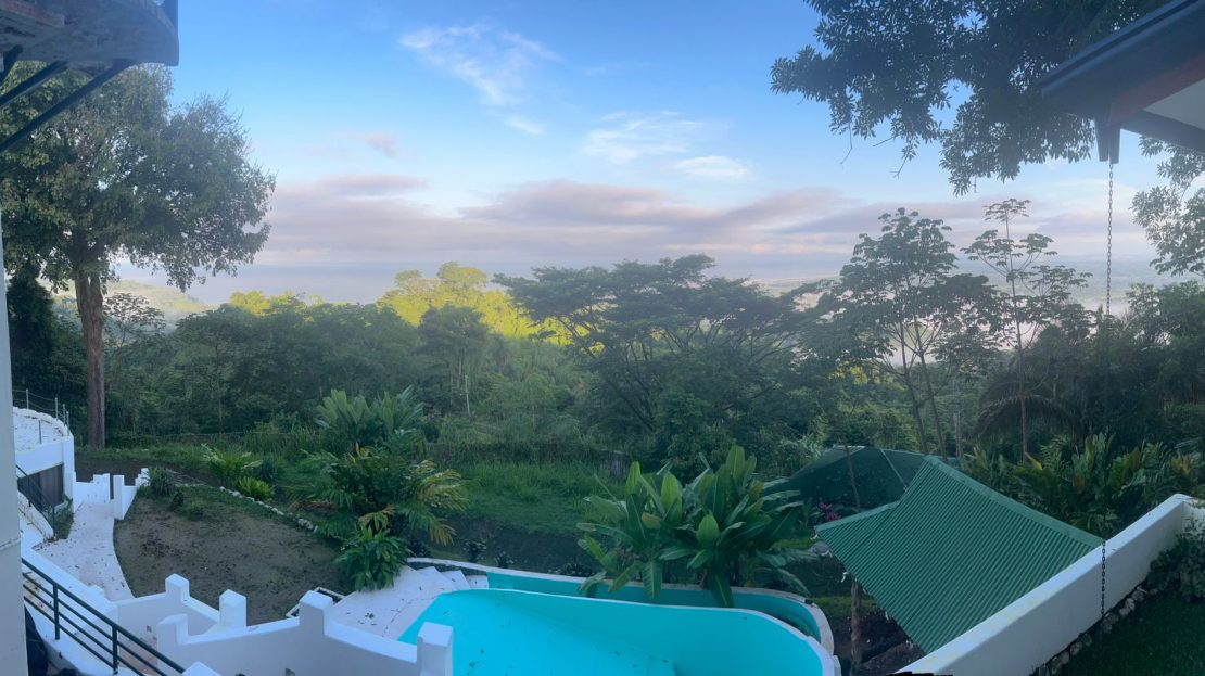 This stunning large home has a fabulous ocean view of the coastline, river and tropical jungles of the Central Pacific Coast of Costa Rica. Conveniently located less than an hour drive from the central valley and international airport, this home is near the Los Suenos Marina and Golf course and the bustling tourist town of Jaco beach, yet it is tucked in the rainforest among the foothills. While it is surrounded by nature, its touches a freshly paved road with great access and convenience, while still retaining the “pura vida” lush, tropical surroundings that attracts visitors from around the world!