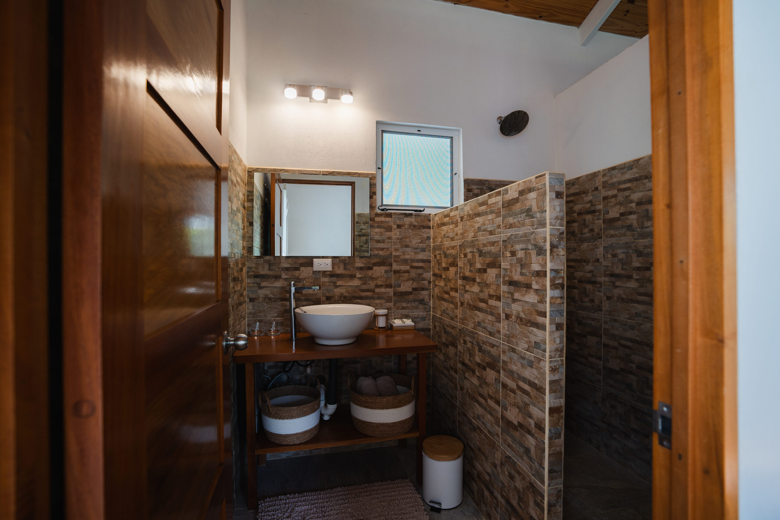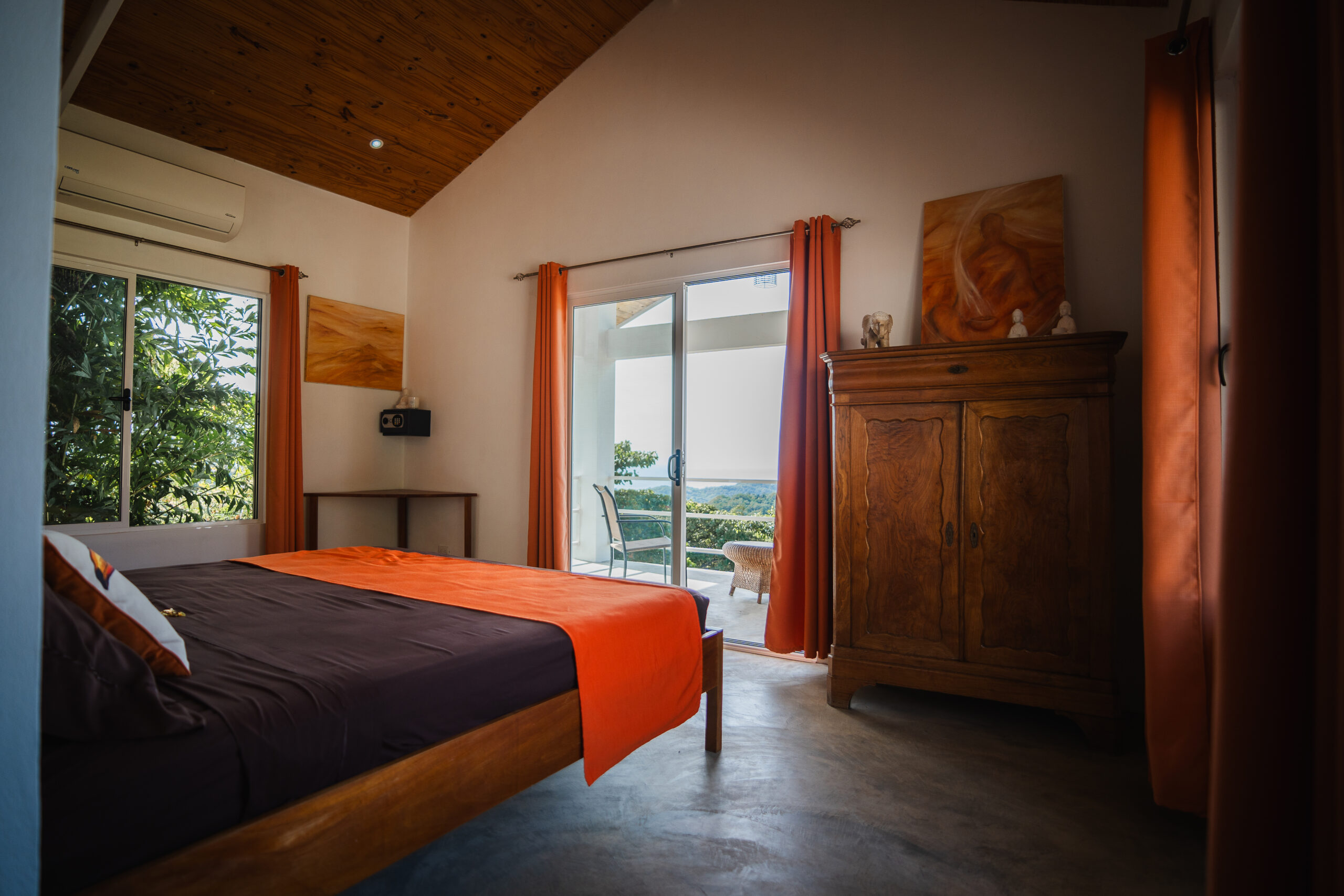 The four bungalows are artfully arranged along the hillside, offering both privacy and panoramic ocean views. Each 40 sqm unit includes a queen-sized bed, private bathroom with a separate toilet, closet, safe, and a private terrace with rocking chairs. Two bungalows feature an additional single bed, and one is designed to be wheelchair accessible. While all units are air-conditioned, the hilltop location ensures consistently pleasant temperatures year-round.
