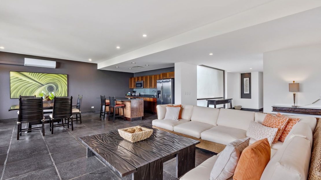 The Treetop 15A has 3 spacious bedrooms, 2.5 bathrooms and a grand living room with a kithen and a balcony opening up to the Pacific Ocean.