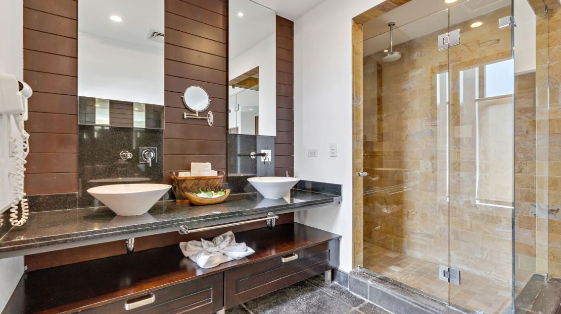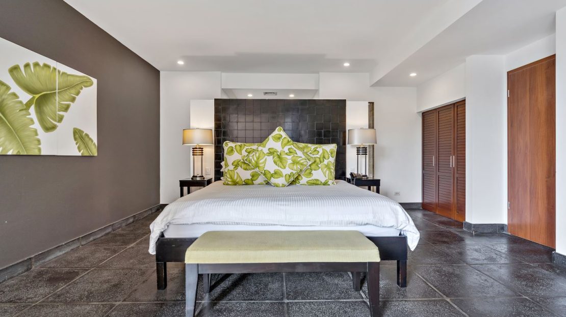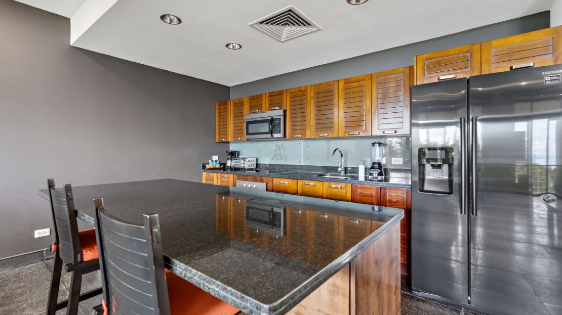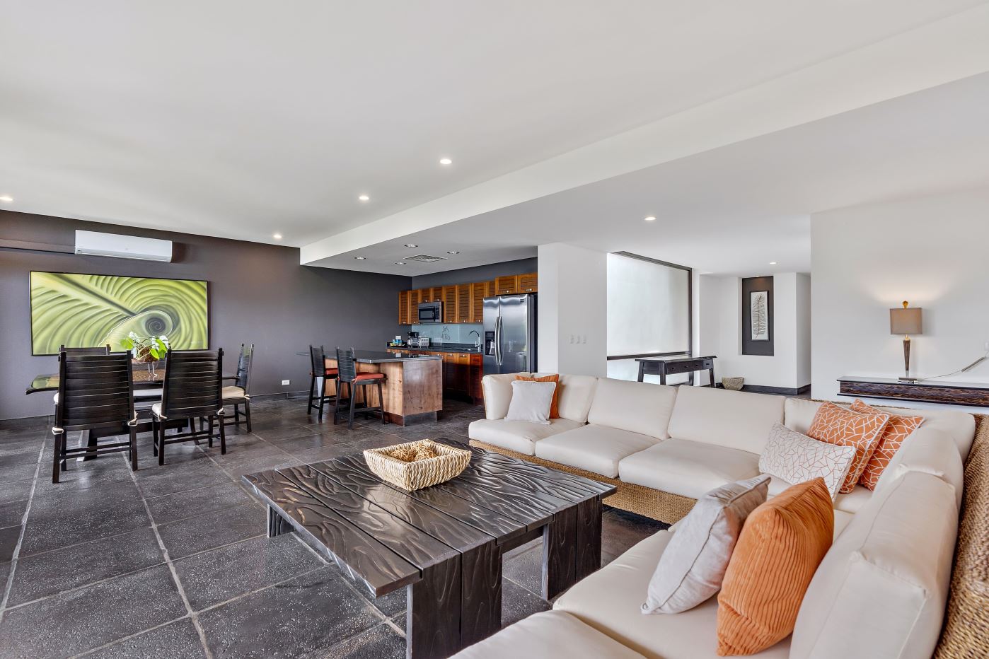 The Treetop 24B has 3 spacious bedrooms, 2.5 bathrooms and a grand living room with a kithen and a balcony opening up to the Pacific Ocean.
