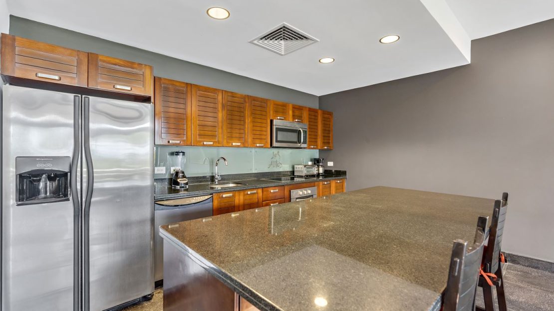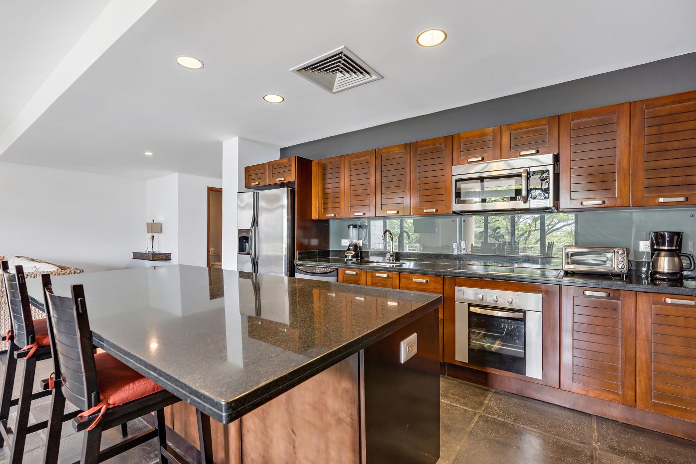 The Treetop 25A has 3 spacious bedrooms, 2.5 bathrooms and a grand living room with a kithen and a balcony opening up to the Pacific Ocean.