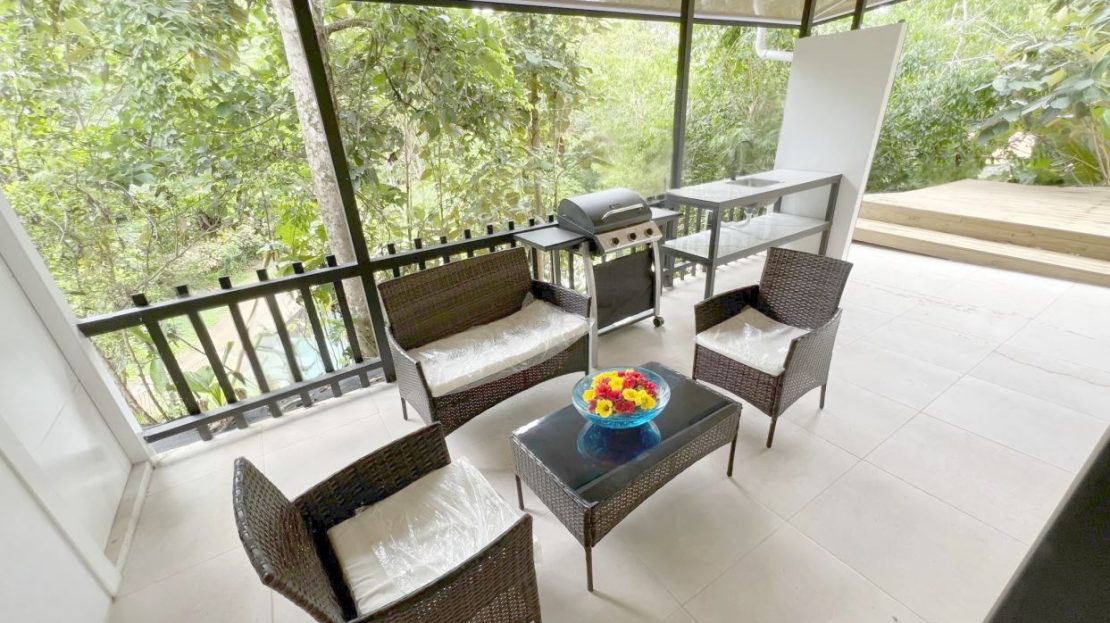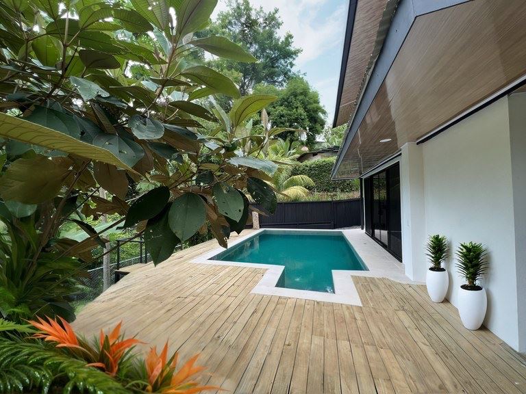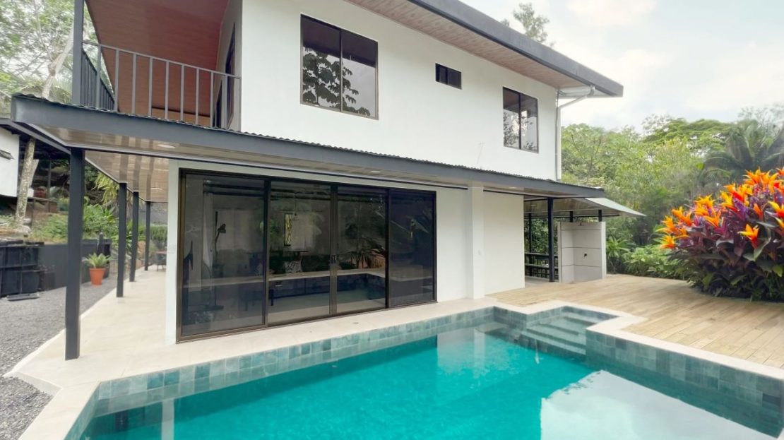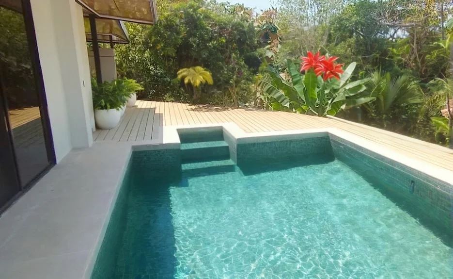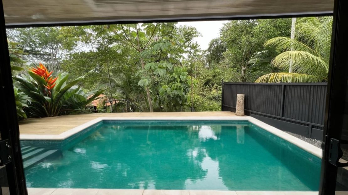 El exterior de la villa es igualmente impresionante, con una impresionante piscina de 7 x 5 metros que sirve como pieza central del espacio de vida al aire libre. Una zona de barbacoa cubierta mejora la experiencia al aire libre, ofreciendo el escenario perfecto para comer al aire libre mientras disfruta de los exuberantes alrededores de la selva. El jardín meticulosamente ajardinado se suma al encanto general y la tranquilidad de la propiedad, por lo que es un oasis en el corazón de Playa Hermosa.