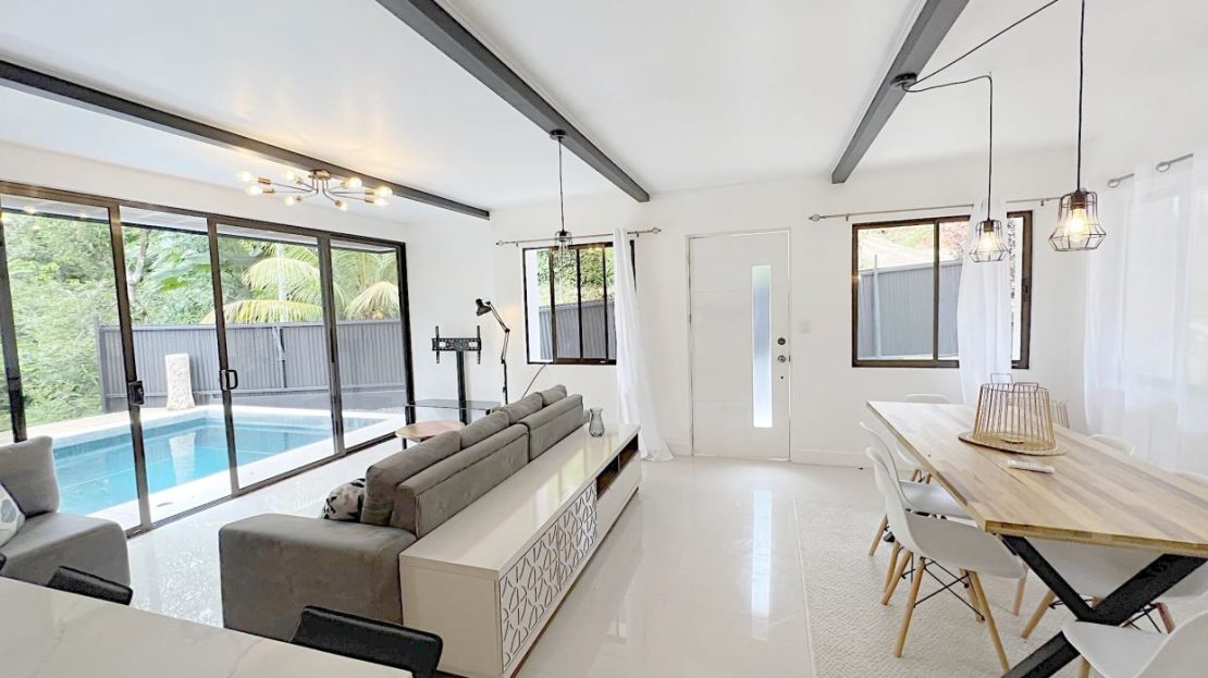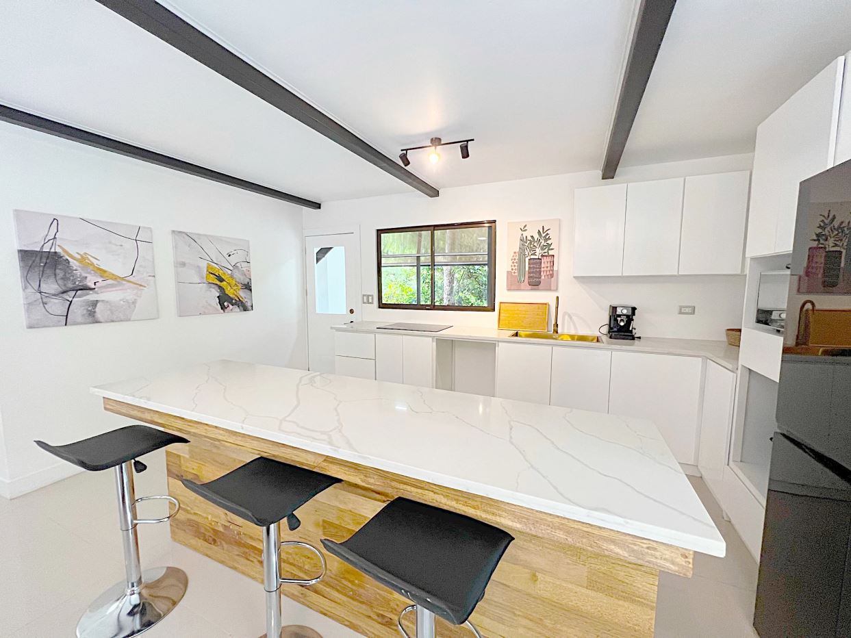 The exterior of the villa is equally impressive, featuring a stunning 7 x 5 meter swimming pool that serves as the centerpiece of the outdoor living space. A covered barbecue area enhances the outdoor experience, offering the perfect setting for al fresco dining while enjoying the lush jungle surroundings. The meticulously landscaped garden further adds to the overall charm and tranquility of the property, making it an oasis in the heart of Playa Hermosa.
