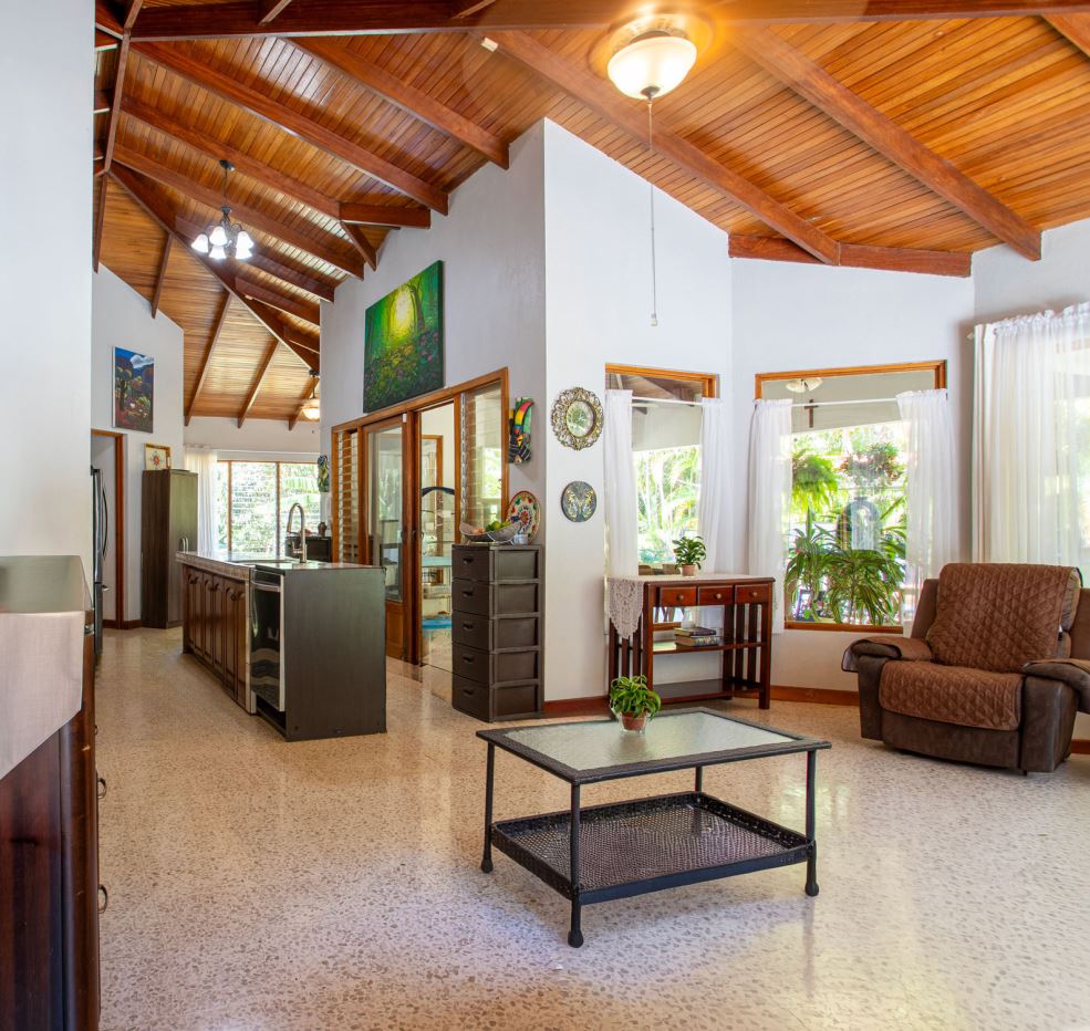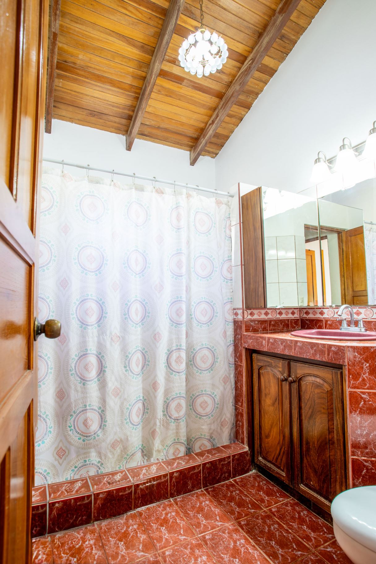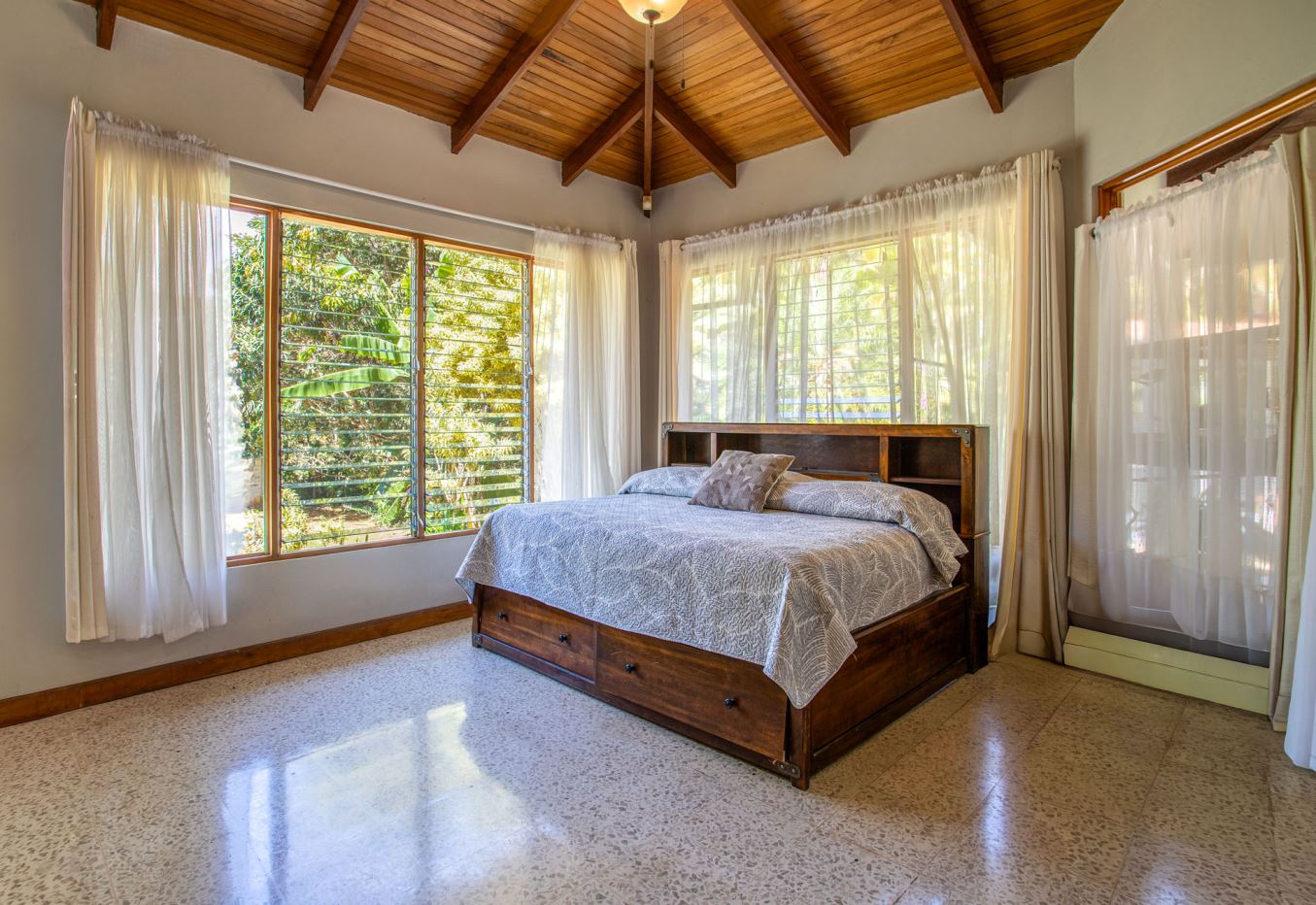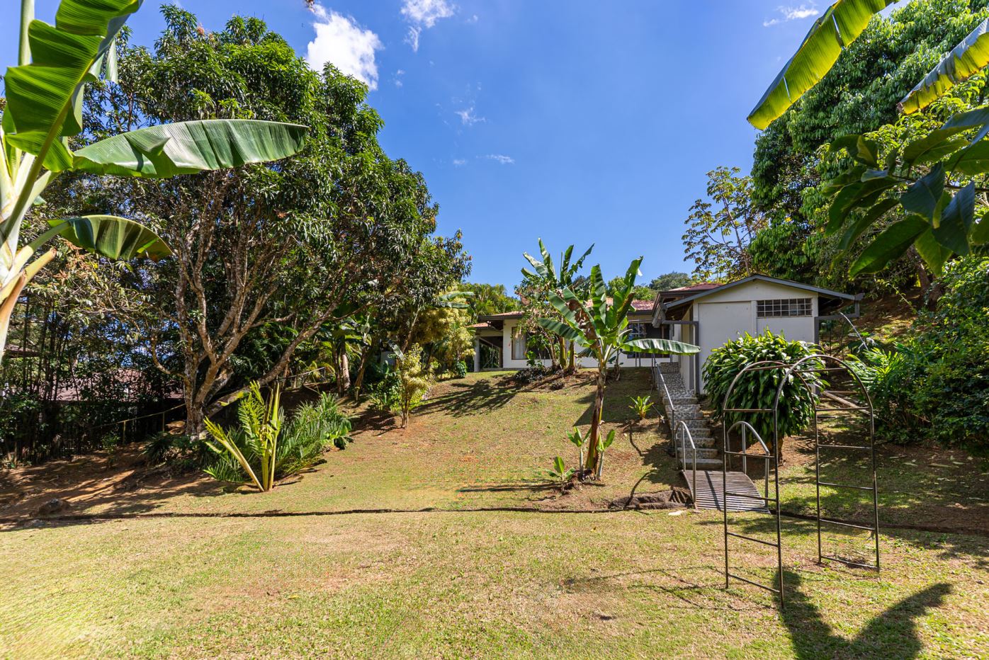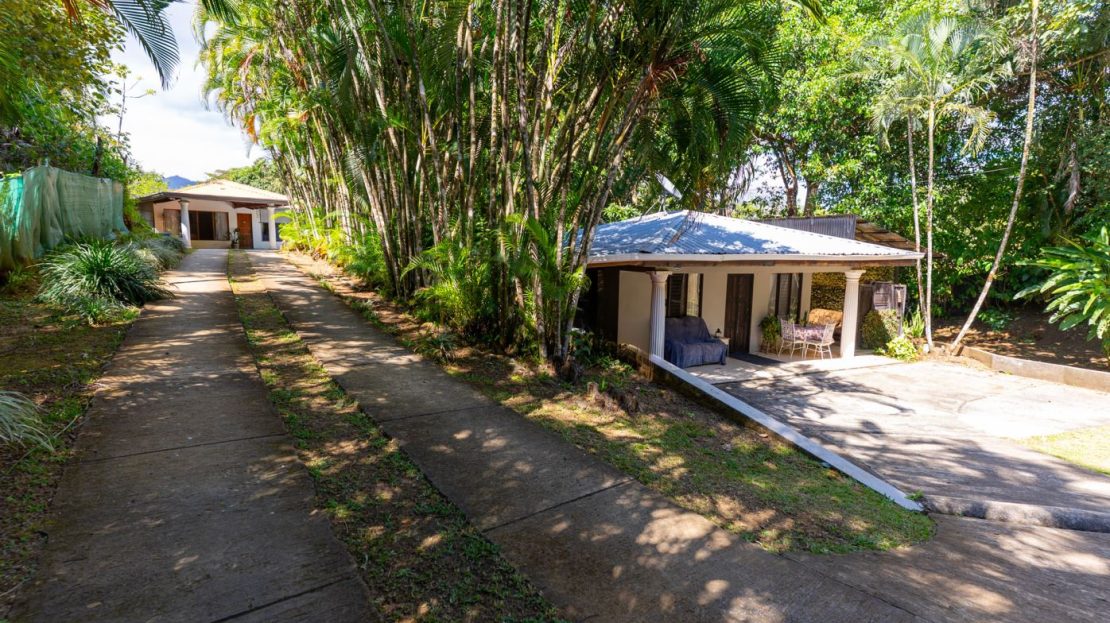 Lovely home and guest home located in the popular and Atenas’ oldest private community, Vista Atenas. The home is located less than 7 minutes from Atenas Center in the picturesque community. A long private entrance leads to the upper main home that is surrounded by prestine mature landscaping with an inviting yard that surrounds the home. The home features artesenal wooden ceilings with plenty of light in the this 2 bedroom and 2 bathroom home. An ample living room leads to a spacious kitchen with a side door to a large covered porch area.