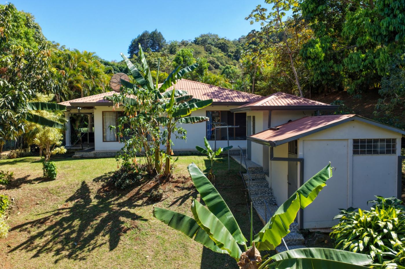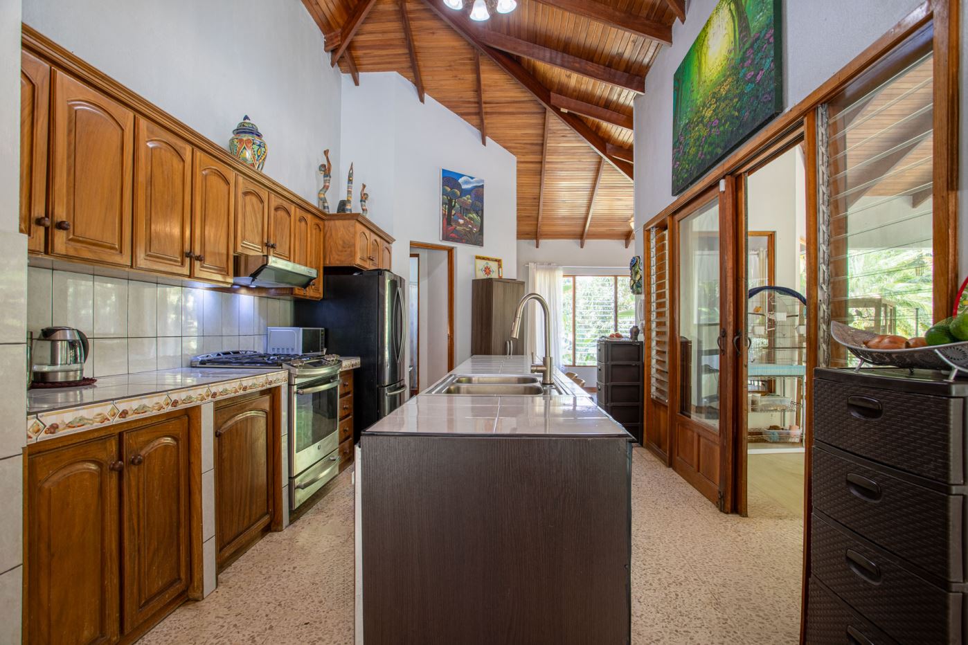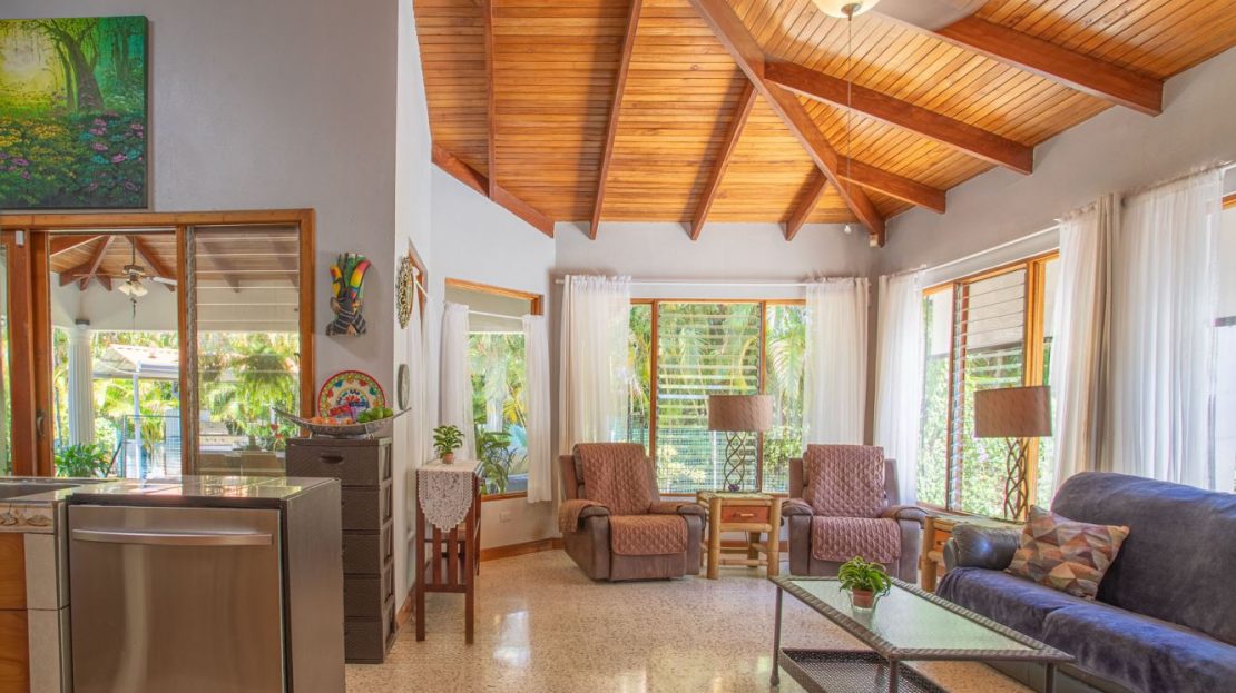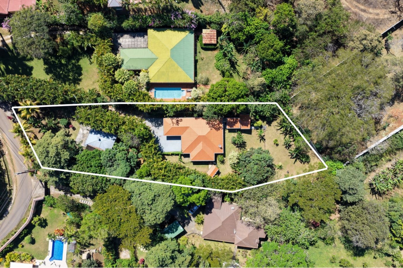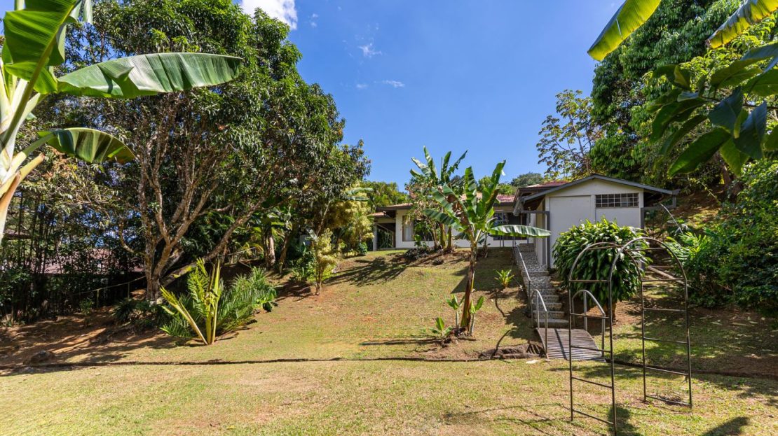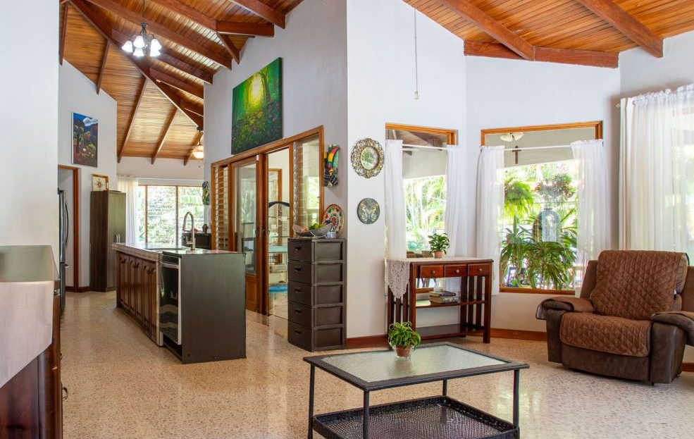 Lovely home and guest home located in the popular and Atenas’ oldest private community, Vista Atenas. The home is located less than 7 minutes from Atenas Center in the picturesque community. A long private entrance leads to the upper main home that is surrounded by prestine mature landscaping with an inviting yard that surrounds the home. The home features artesenal wooden ceilings with plenty of light in the this 2 bedroom and 2 bathroom home. An ample living room leads to a spacious kitchen with a side door to a large covered porch area.