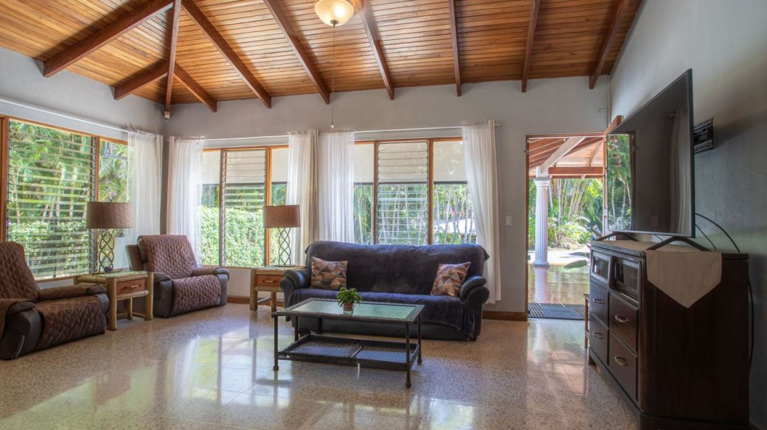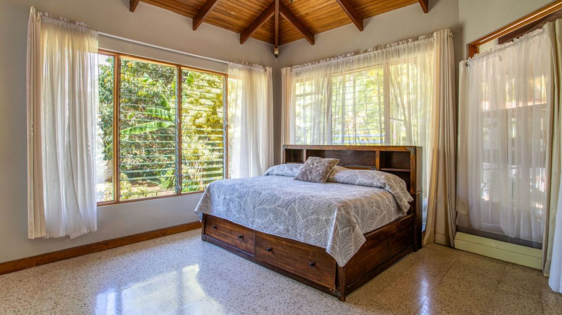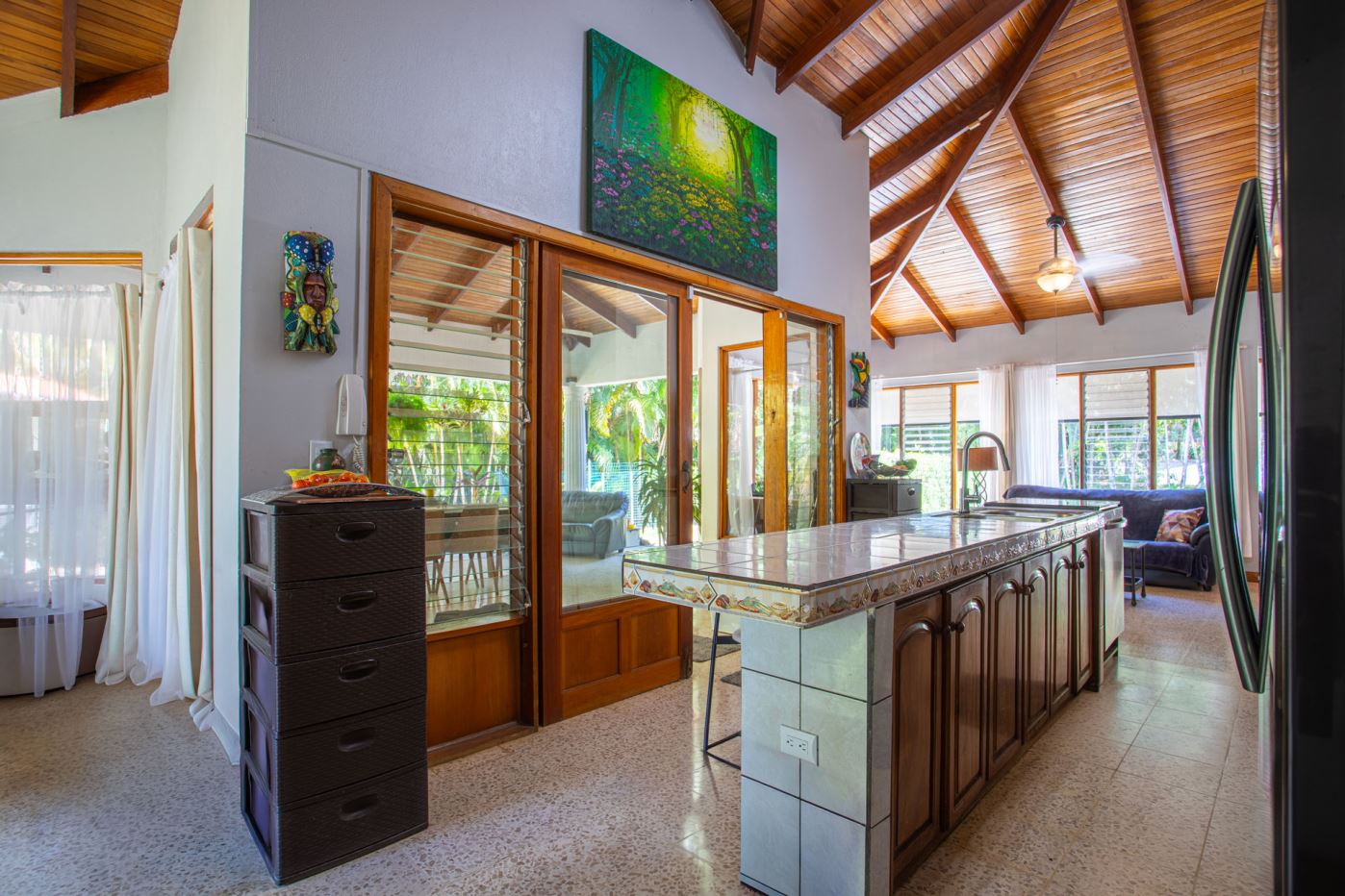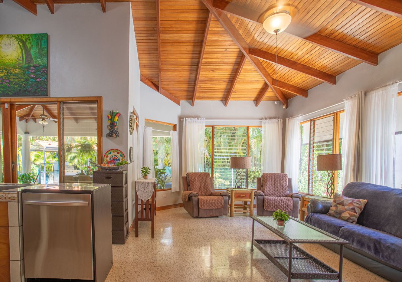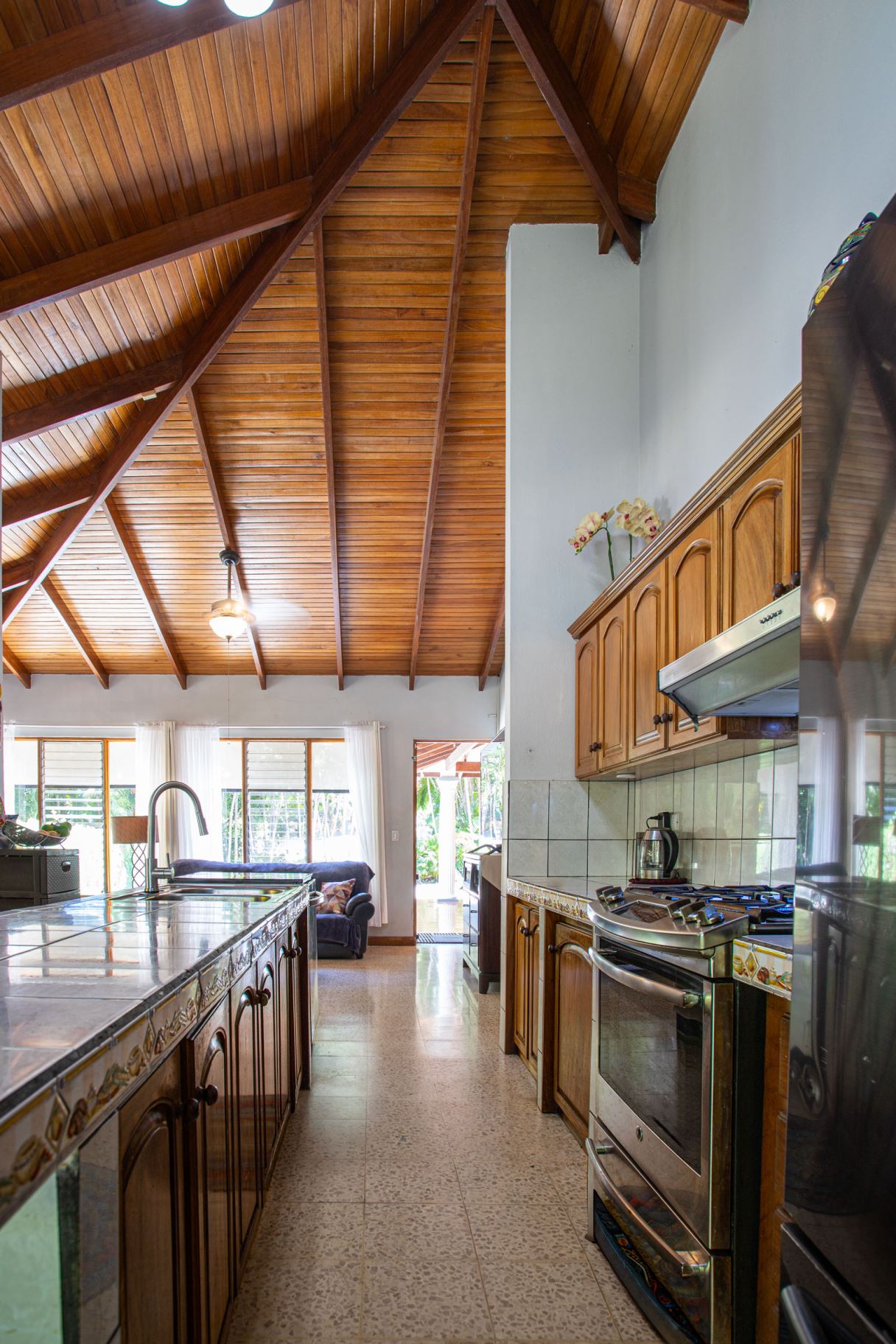 Lovely home and guest home located in the popular and Atenas’ oldest private community, Vista Atenas. The home is located less than 7 minutes from Atenas Center in the picturesque community. A long private entrance leads to the upper main home that is surrounded by prestine mature landscaping with an inviting yard that surrounds the home. The home features artesenal wooden ceilings with plenty of light in the this 2 bedroom and 2 bathroom home. An ample living room leads to a spacious kitchen with a side door to a large covered porch area.