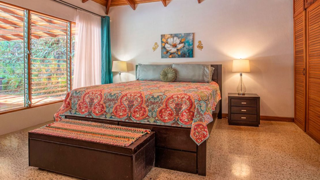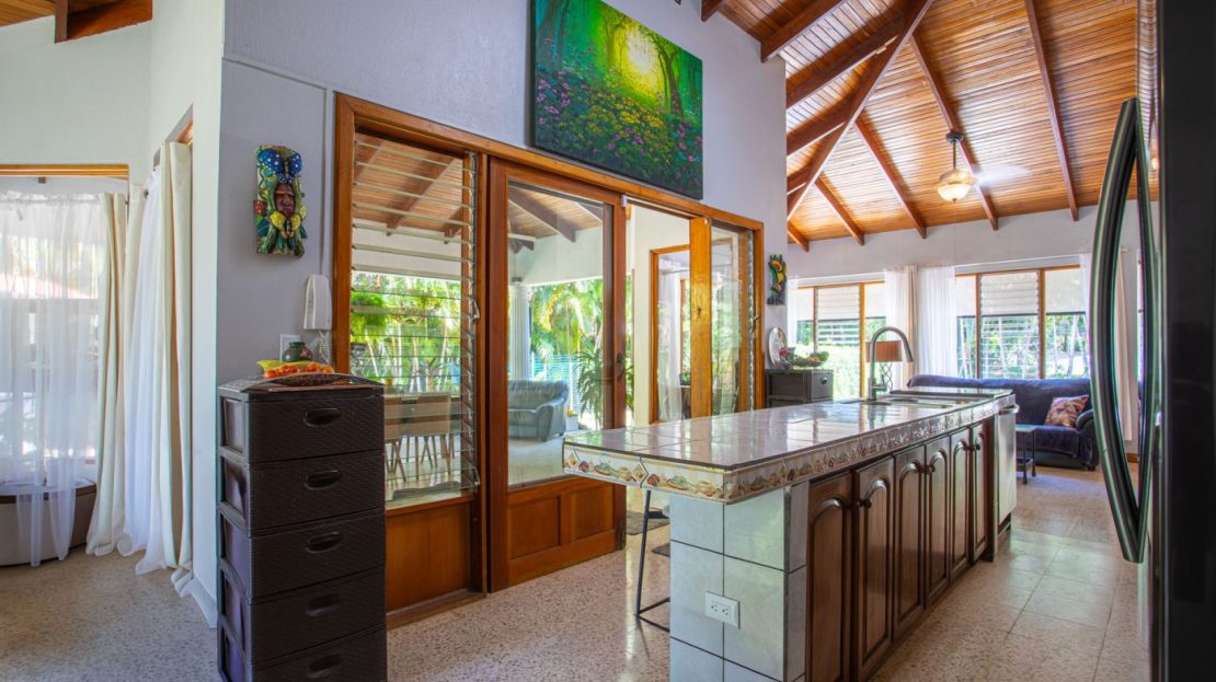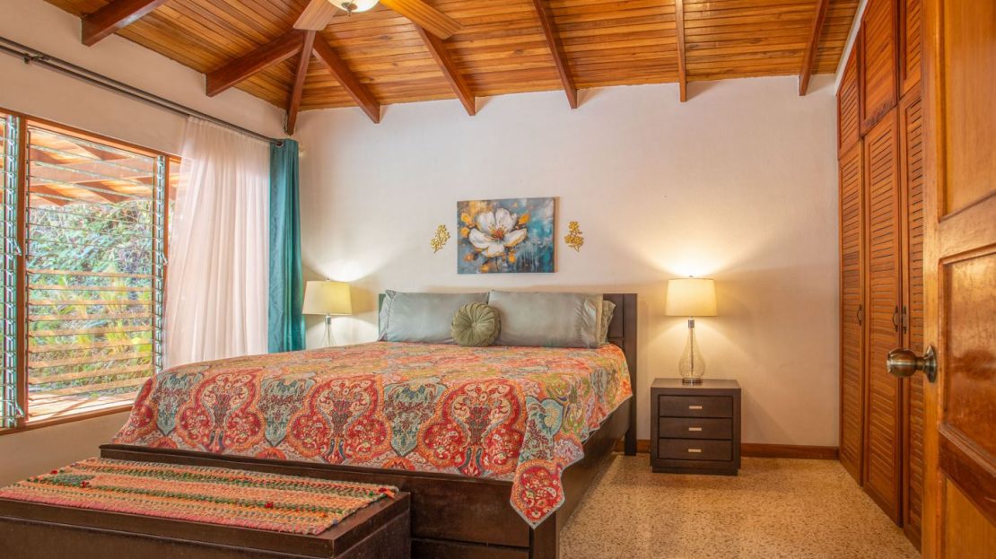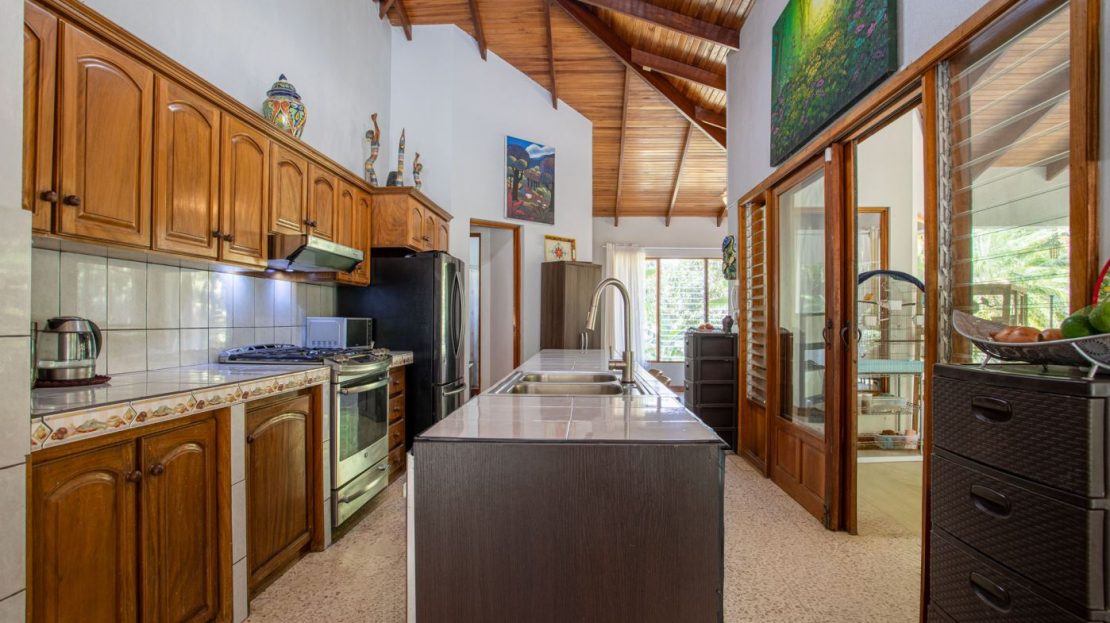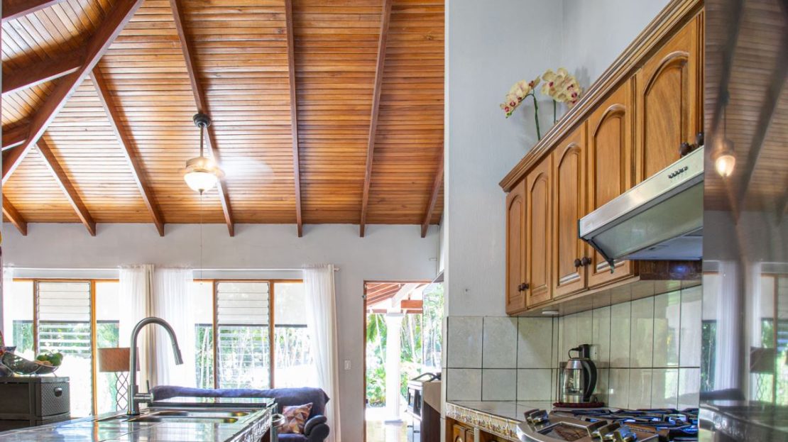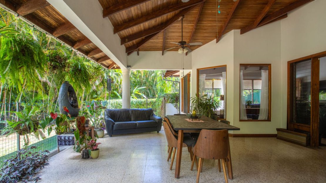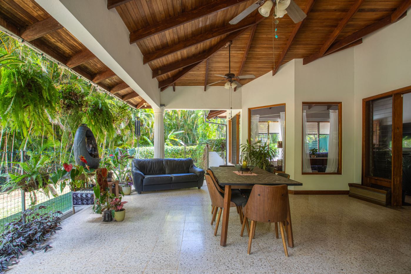 Lovely home and guest home located in the popular and Atenas’ oldest private community, Vista Atenas. The home is located less than 7 minutes from Atenas Center in the picturesque community. A long private entrance leads to the upper main home that is surrounded by prestine mature landscaping with an inviting yard that surrounds the home. The home features artesenal wooden ceilings with plenty of light in the this 2 bedroom and 2 bathroom home. An ample living room leads to a spacious kitchen with a side door to a large covered porch area.