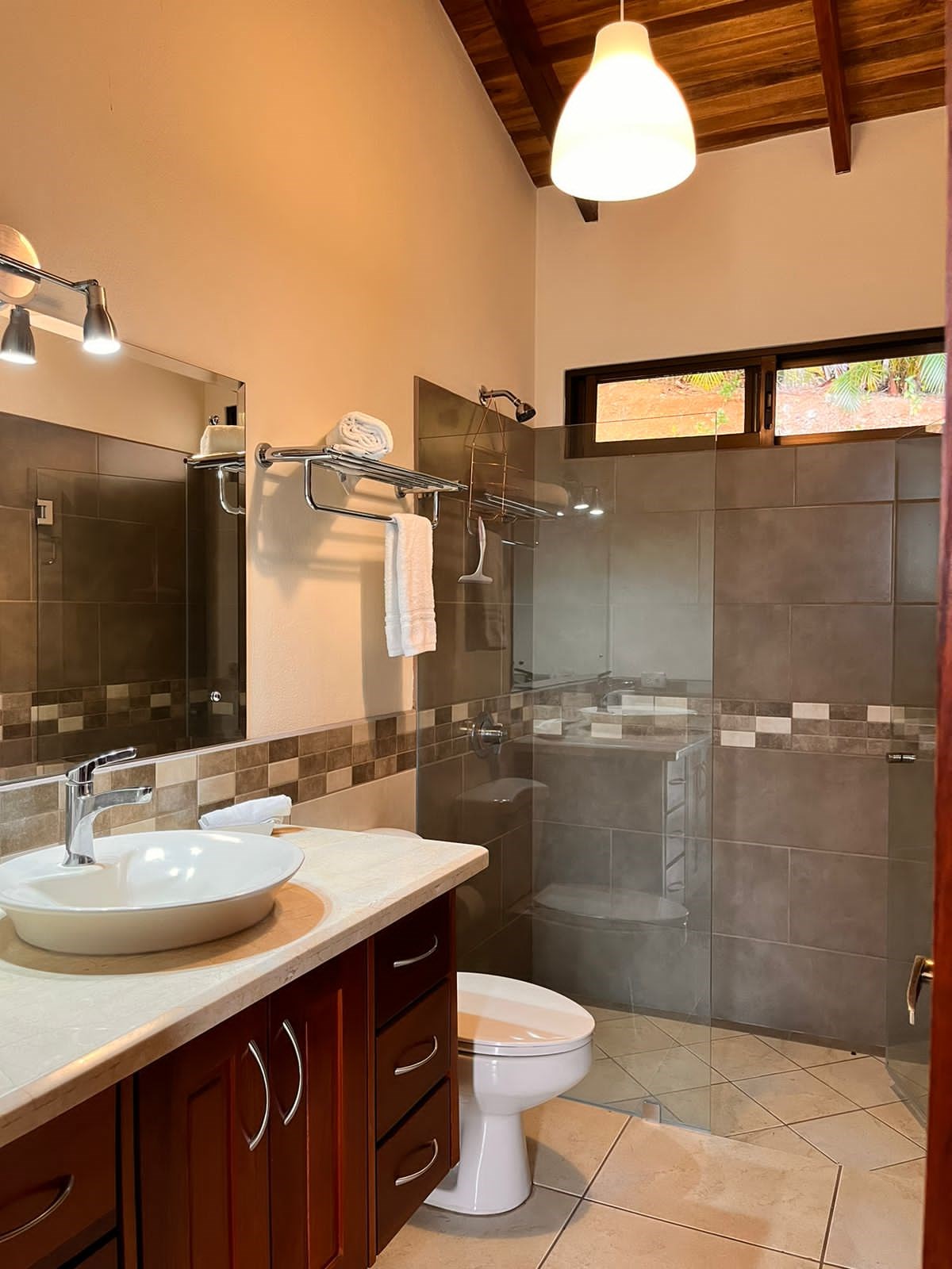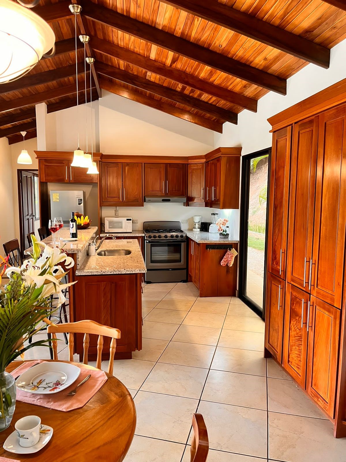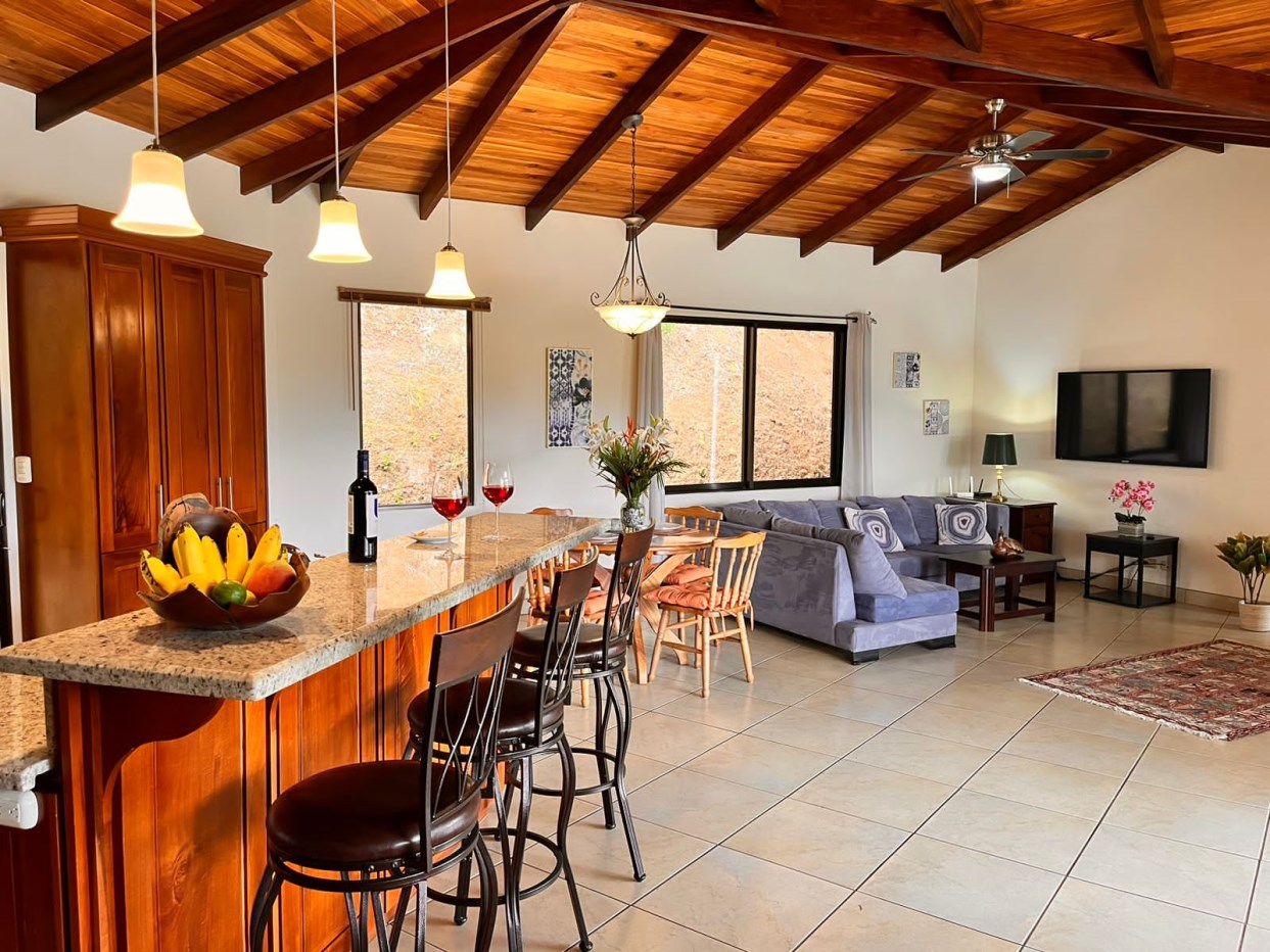 Hermosa casa en Roca Verde comunidad cerrada, ubicada de manera segura cerca de la puerta de guardia, cuenta con excelentes vistas de las montañas de la zona y está rodeada de un paisaje exuberante. La casa cuenta con mucha carpintería artesanal en todas partes, incluidos los techos interiores y exteriores. La gran y acogedora terraza conduce a una bañera de hidromasaje con un patio lateral adicional, ideal para una futura piscina. La terraza conduce a un plano de planta abierto con sala, comedor y amplia cocina moderna. Hay dos suites en cada extremo con baño y un porche cubierto en el patio trasero. También hay un garaje cerrado adjunto. ¡Tu nuevo hogar esperándote en Atenas!
