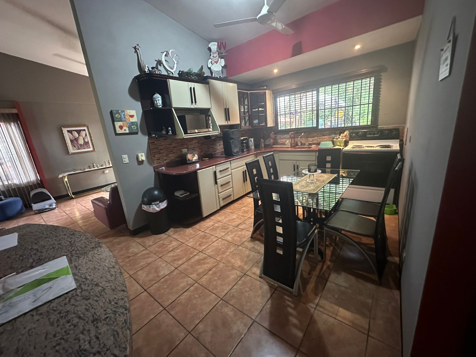 • Comfortable living room, dining area, and kitchen