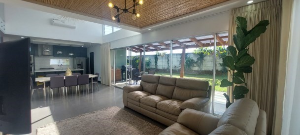 Se alquila esta casa completamente amueblada. Se ubica en un exclusivo condominio cerca del centro, con diseño contemporáneo y acabados de alta calidad. Completamente amueblada con electrodomésticos y muebles de prestigiosas marcas. Ofrece un concepto abierto espacioso, 4 dormitorios y 3 baños completos. La hermosa terraza con parrilla es ideal para reuniones al aire libre. Además, disfruta de zonas verdes y vistas impresionantes. El espacioso dormitorio principal cuenta con baño y walk-in closet, brindando un oasis lleno de lujo. ¡Una experiencia de vida excepcional!