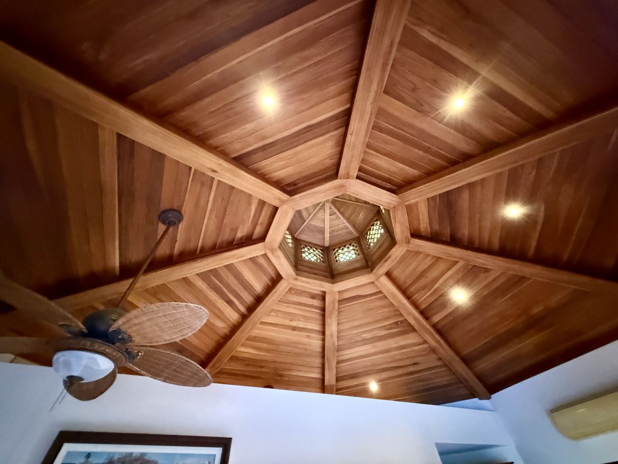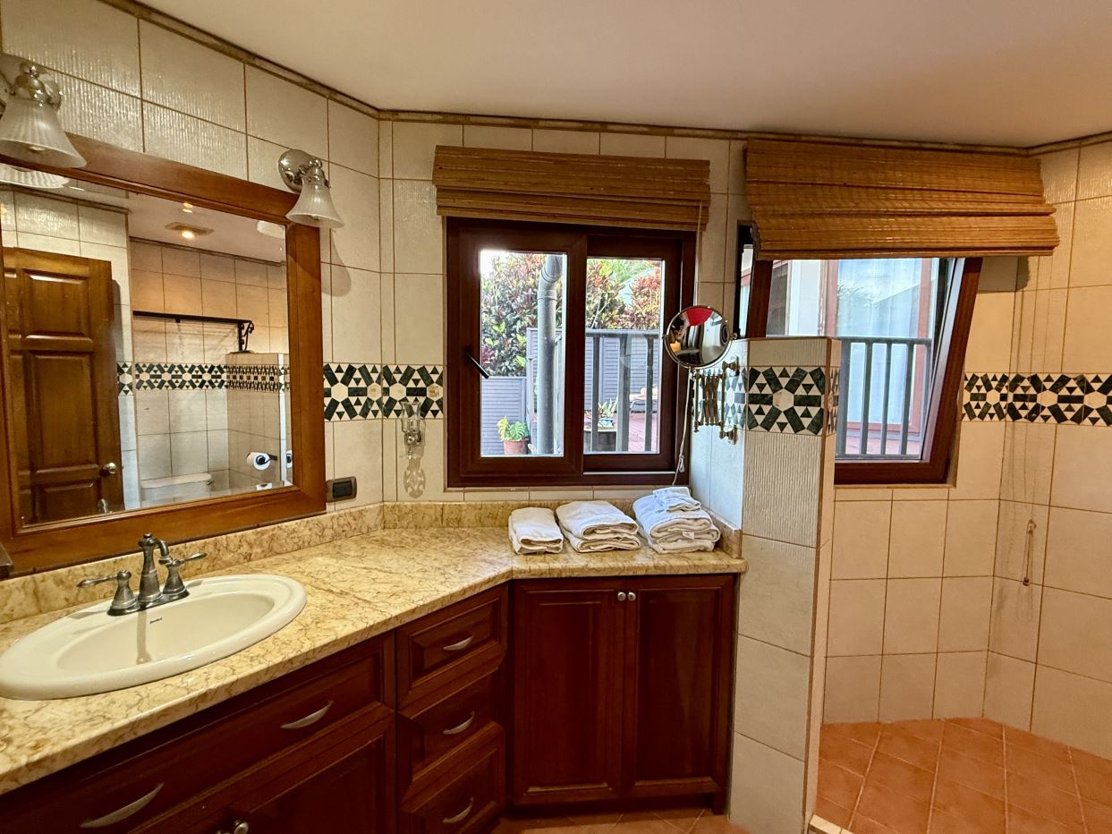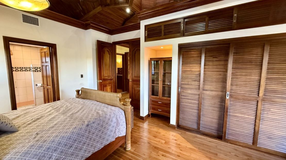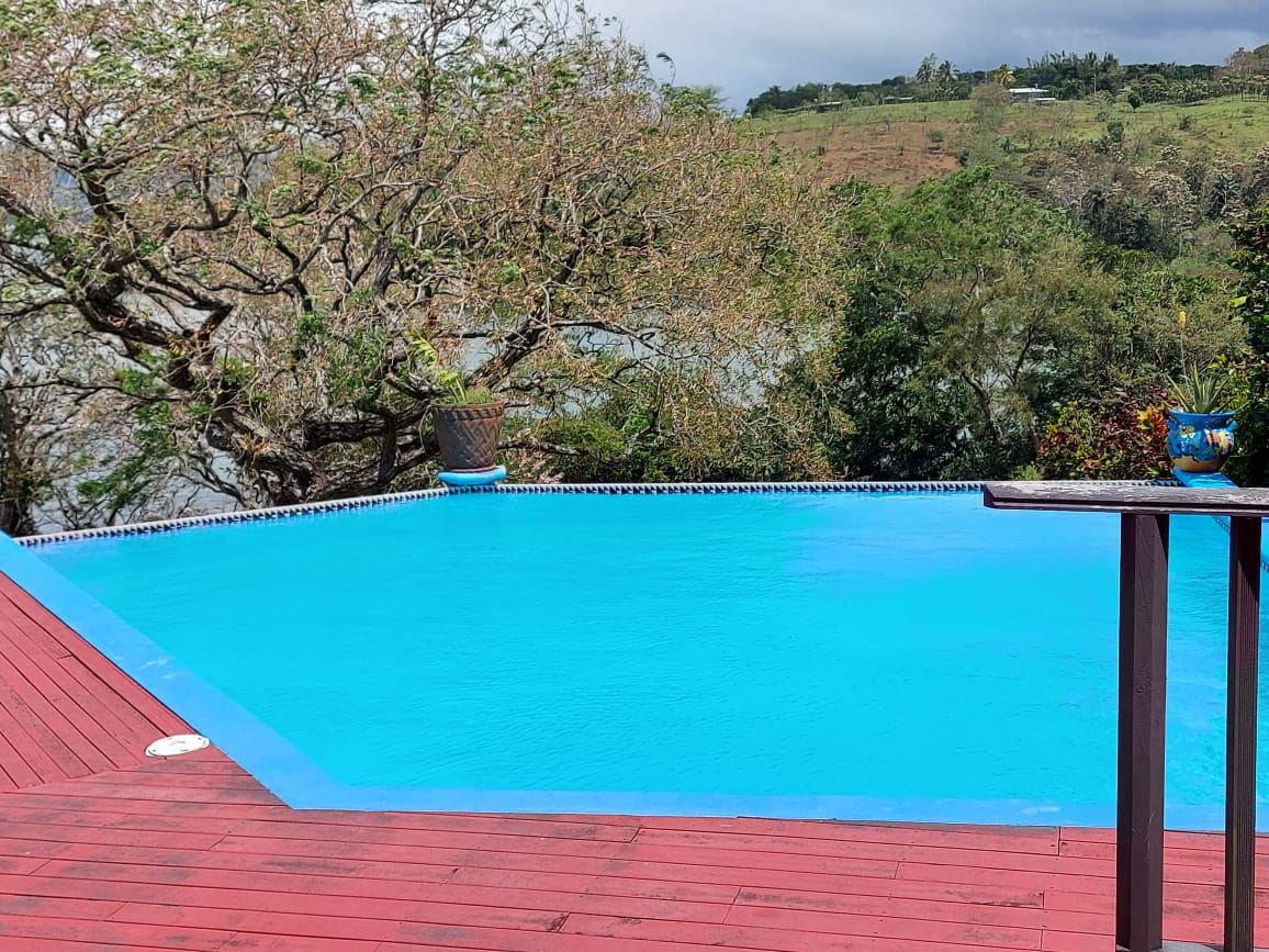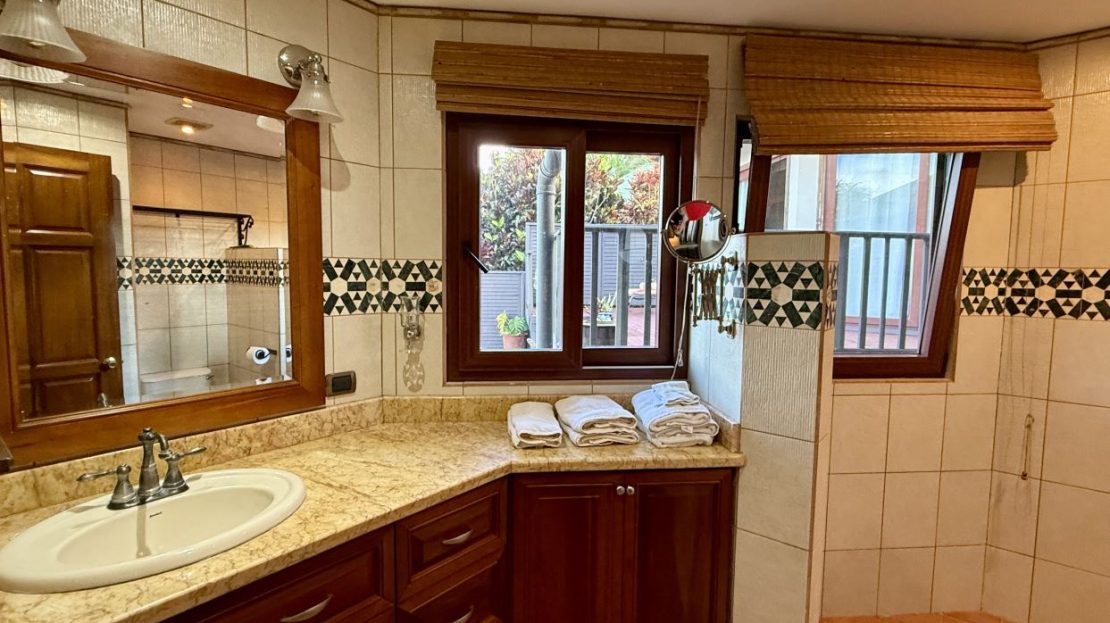 Outdoors, the property truly shines. A lovely swimming pool offers the perfect place to cool off, relax, or enjoy the year-round mild climate for which Lake Arenal is known. The landscaped gardens are filled with mature trees, tropical plants, and natural shade, creating a sanctuary ideal for birdwatching, gardening, or simply unwinding in nature. A covered garage adds convenience and practicality to the estate.