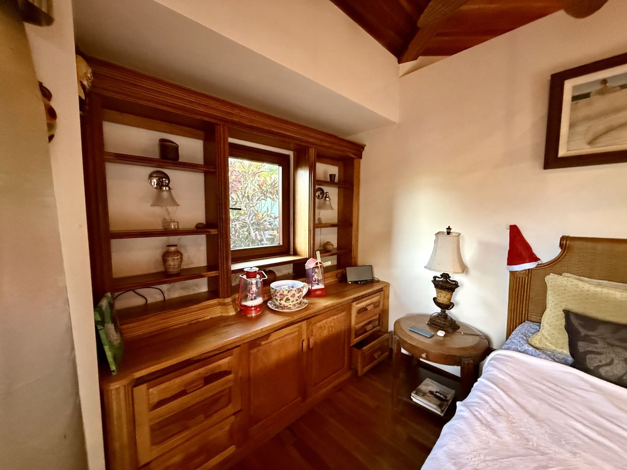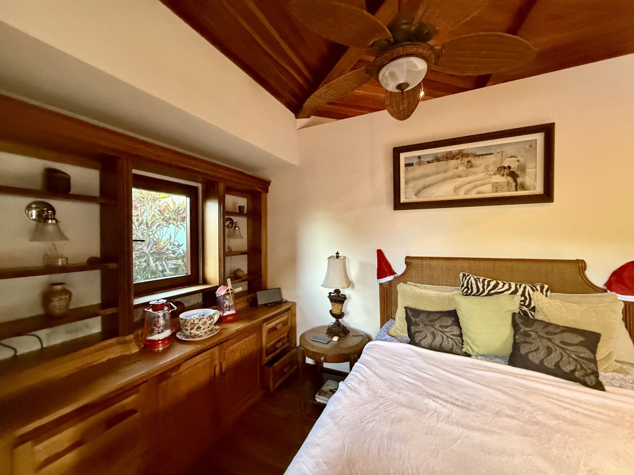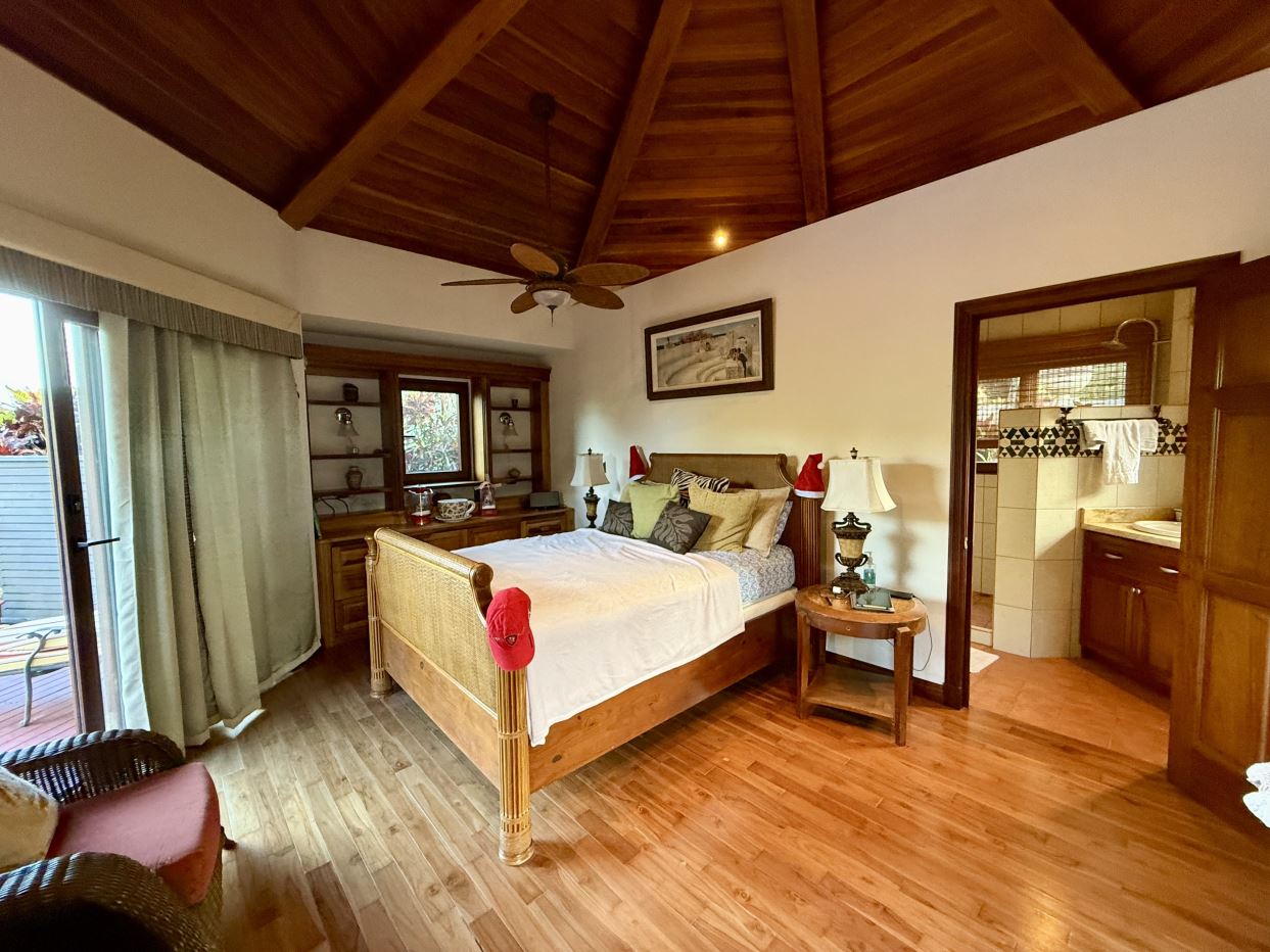 La residencia principal está completamente amueblada y diseñada con esmero, con dos cómodas habitaciones y dos baños y medio. Cada espacio ha sido diseñado para promover la relajación y la conexión con el paisaje circundante. Los amplios ventanales y las áreas de estar abiertas permiten la entrada de luz natural durante todo el día, a la vez que ofrecen vistas constantes a los jardines y la vibrante vegetación que enmarca la casa. La cocina y la sala de estar se integran naturalmente con el exterior, facilitando la convivencia entre el interior y el exterior. Ya sea disfrutando de un tranquilo café por la mañana, recibiendo a amigos y familiares o simplemente contemplando la belleza del paisaje, la casa ofrece múltiples espacios que fomentan un estilo de vida tranquilo y armonioso. Complementando la residencia principal, se encuentra una hermosa casa de huéspedes privada con una espaciosa habitación y un baño completo. Con vistas a la piscina y al patio delantero, la casa de huéspedes funciona perfectamente como un refugio para visitas o como una atractiva unidad de alquiler. Ofrece una flexibilidad excepcional y un gran potencial de ingresos para quienes consideran invertir o alquilar a corto plazo.