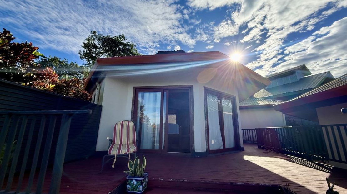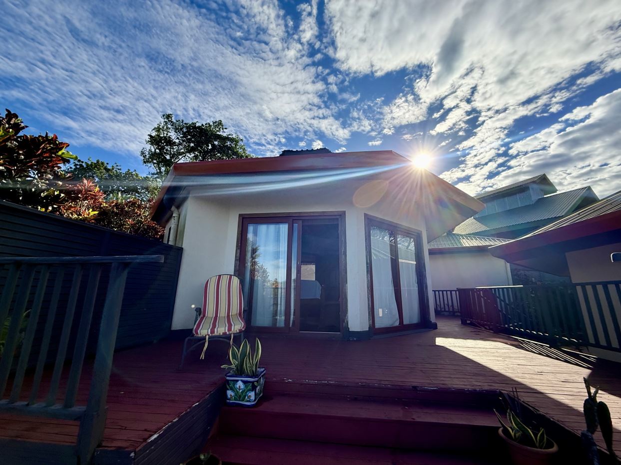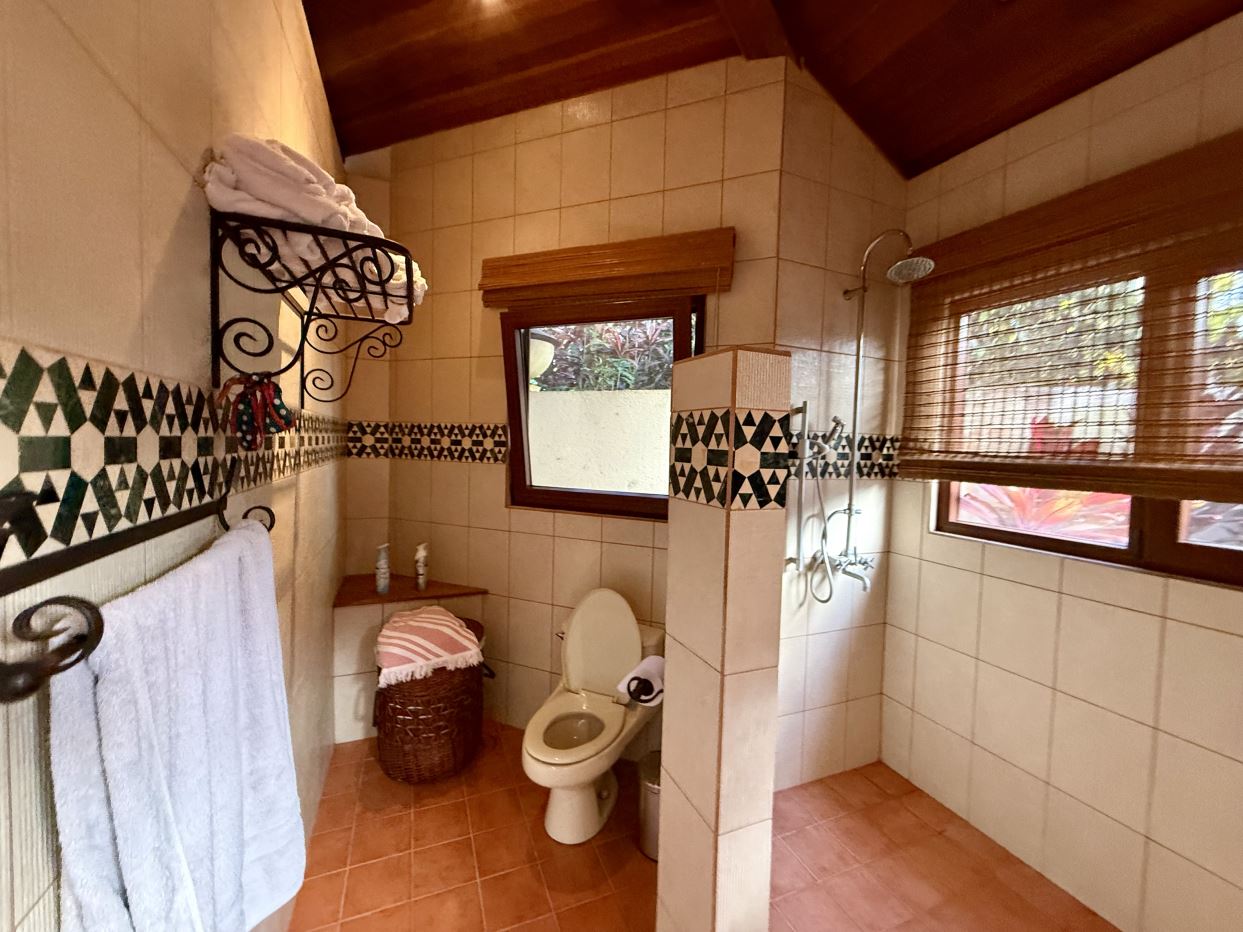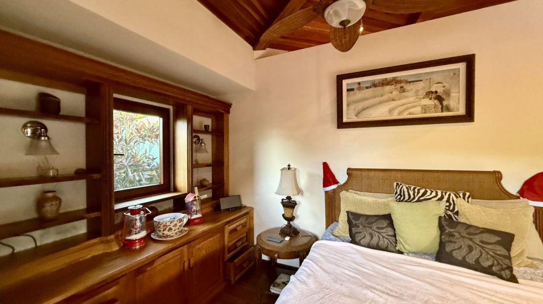 La residencia principal está completamente amueblada y diseñada con esmero, con dos cómodas habitaciones y dos baños y medio. Cada espacio ha sido diseñado para promover la relajación y la conexión con el paisaje circundante. Los amplios ventanales y las áreas de estar abiertas permiten la entrada de luz natural durante todo el día, a la vez que ofrecen vistas constantes a los jardines y la vibrante vegetación que enmarca la casa. La cocina y la sala de estar se integran naturalmente con el exterior, facilitando la convivencia entre el interior y el exterior. Ya sea disfrutando de un tranquilo café por la mañana, recibiendo a amigos y familiares o simplemente contemplando la belleza del paisaje, la casa ofrece múltiples espacios que fomentan un estilo de vida tranquilo y armonioso. Complementando la residencia principal, se encuentra una hermosa casa de huéspedes privada con una espaciosa habitación y un baño completo. Con vistas a la piscina y al patio delantero, la casa de huéspedes funciona perfectamente como un refugio para visitas o como una atractiva unidad de alquiler. Ofrece una flexibilidad excepcional y un gran potencial de ingresos para quienes consideran invertir o alquilar a corto plazo.