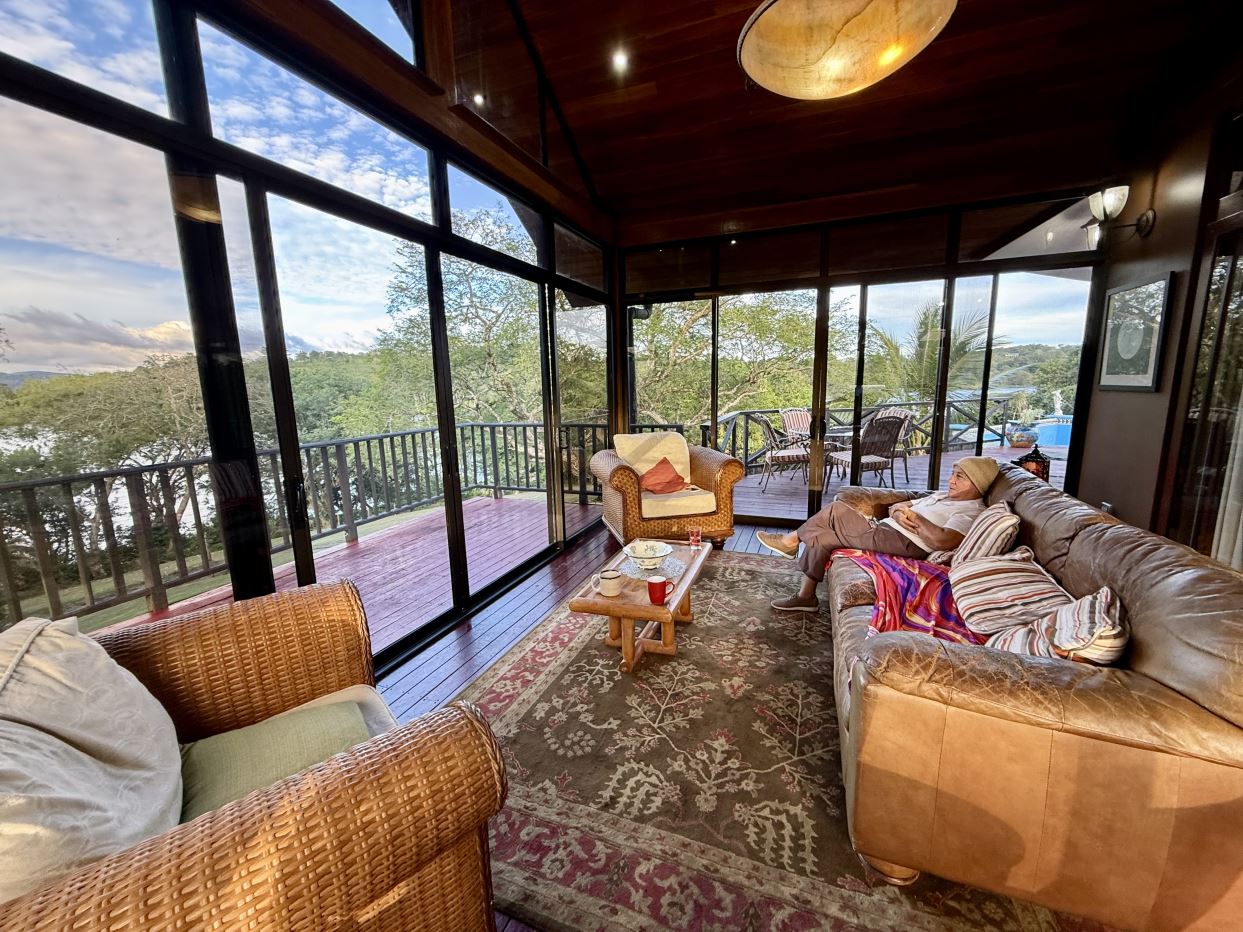 Casa Encanto – Lago Arenal, Costa Rica Casa Encanto representa una de las opciones más cautivadoras frente al lago en la región del Lago Arenal: una residencia excepcional donde la belleza natural, la tranquilidad y la vida refinada se combinan a la perfección. Ubicada a solo 5 minutos a pie de Puerto San Luis, el muelle público, esta casa ofrece un acceso inigualable al lago y sus actividades recreativas, lo que la convierte en un destino privilegiado para quienes buscan aventura y serenidad. Ubicada dentro de la comunidad privada de 19 lotes de Buena Vista I en San Luis, la propiedad goza de una ubicación privilegiada rodeada de un frondoso bosque, colinas ondulantes y vistas panorámicas del lago y el campo. La tranquilidad del entorno se ve realzada por los sonidos de la naturaleza, las visitas de la fauna local y la suave brisa que llega del Lago Arenal, creando un entorno que se siente aislado pero acogedor.