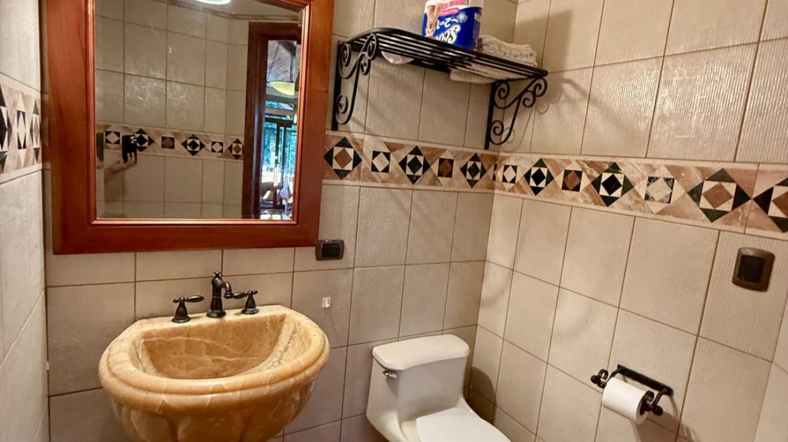 The main residence is fully furnished and thoughtfully designed, featuring 2 comfortable bedrooms and 2.5 bathrooms. Every space has been crafted to promote relaxation and connection with the surrounding landscape. Large windows and open living areas allow natural light to filter in throughout the day, while offering constant views of the gardens and the vibrant greenery that frames the home.