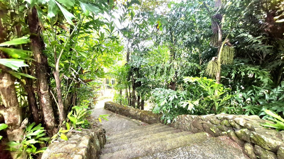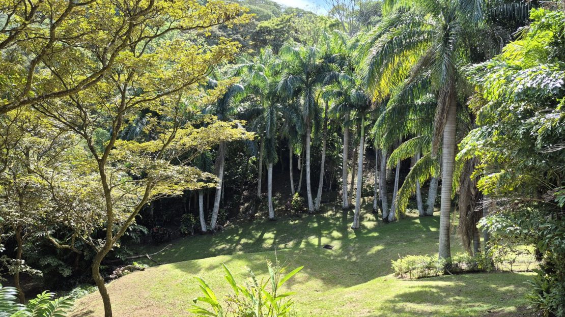 Extensive fruit trees including mango, avocado, mandarin, lemon, coconuts, and more