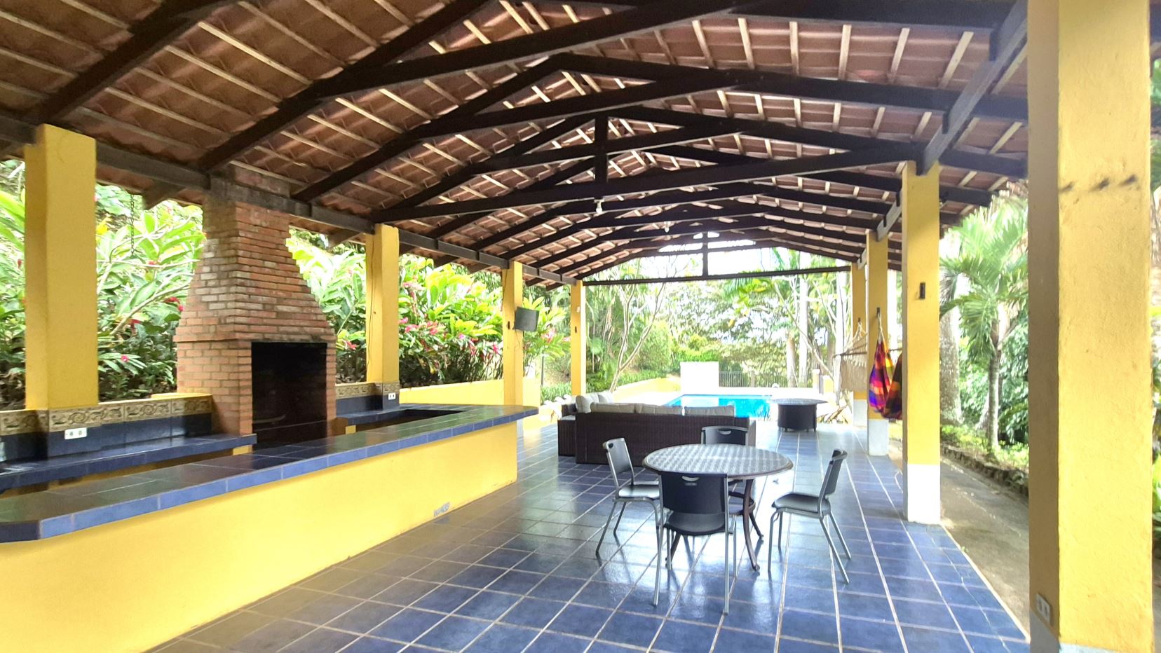 Beautiful pool area with rancho, featuring a traditional kitchen
