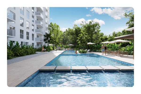 Piscina estilo resort para relajarse o ejercitarse, Gimnasio completamente equipado, Acceso directo a la playa, Comunidad cerrada con control de acceso y vigilancia 24/7, Áreas comunes iluminadas y seguras, Sistema de videovigilancia en todo el edificio