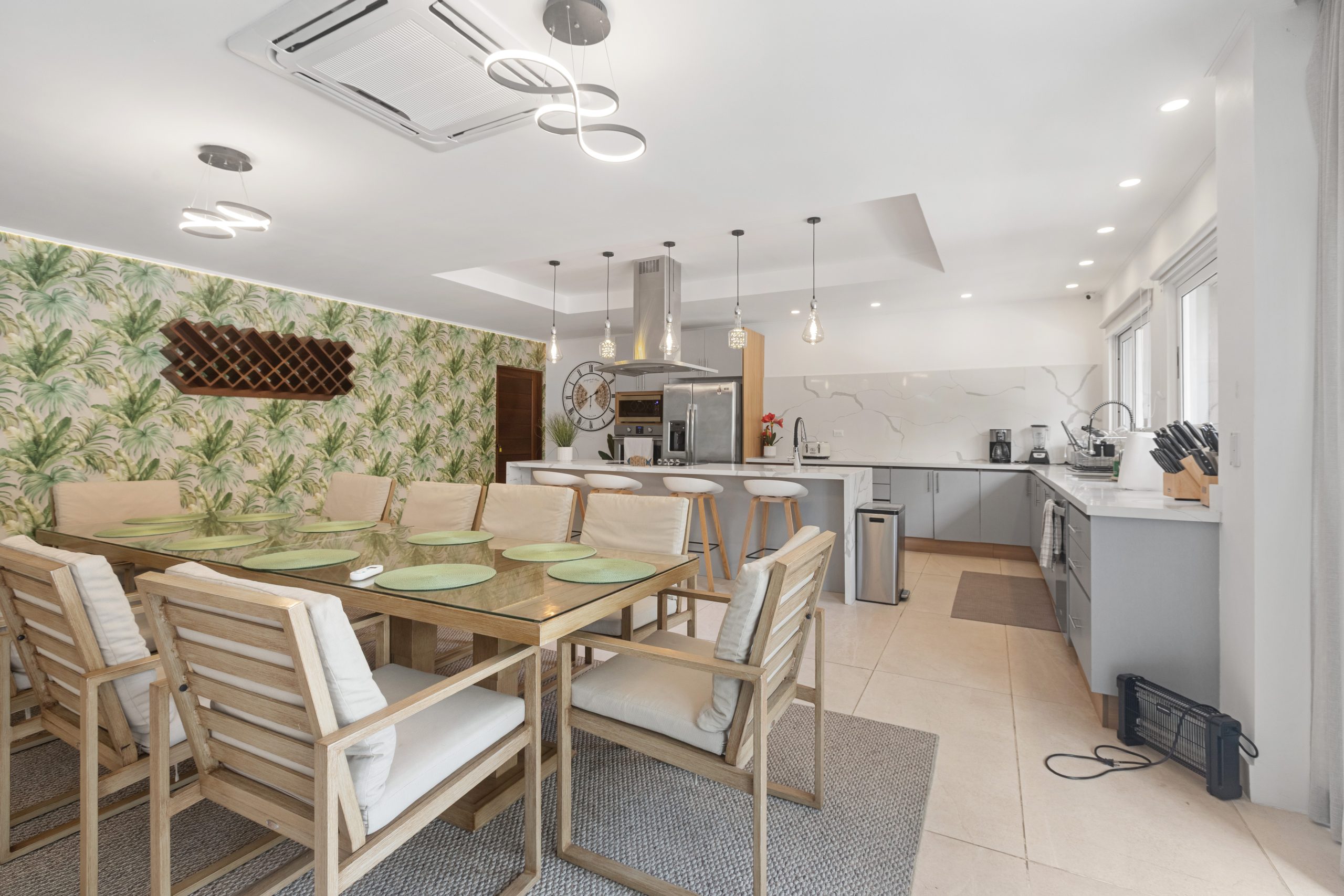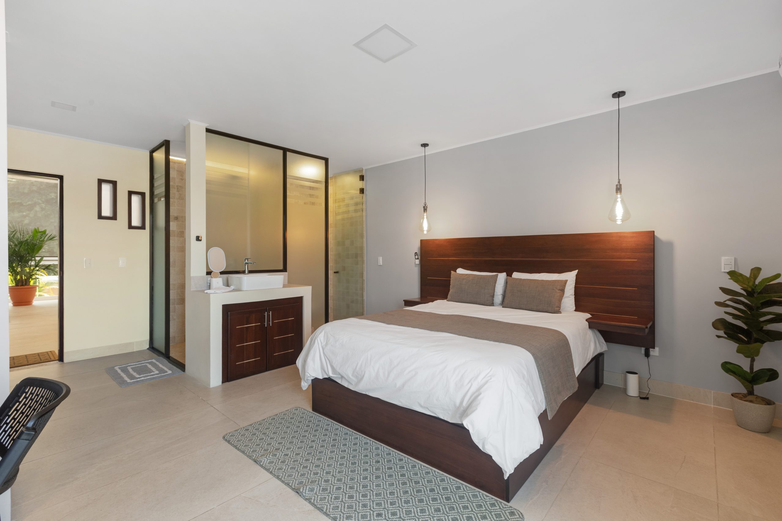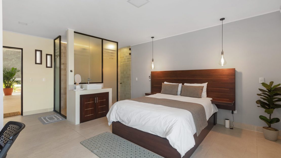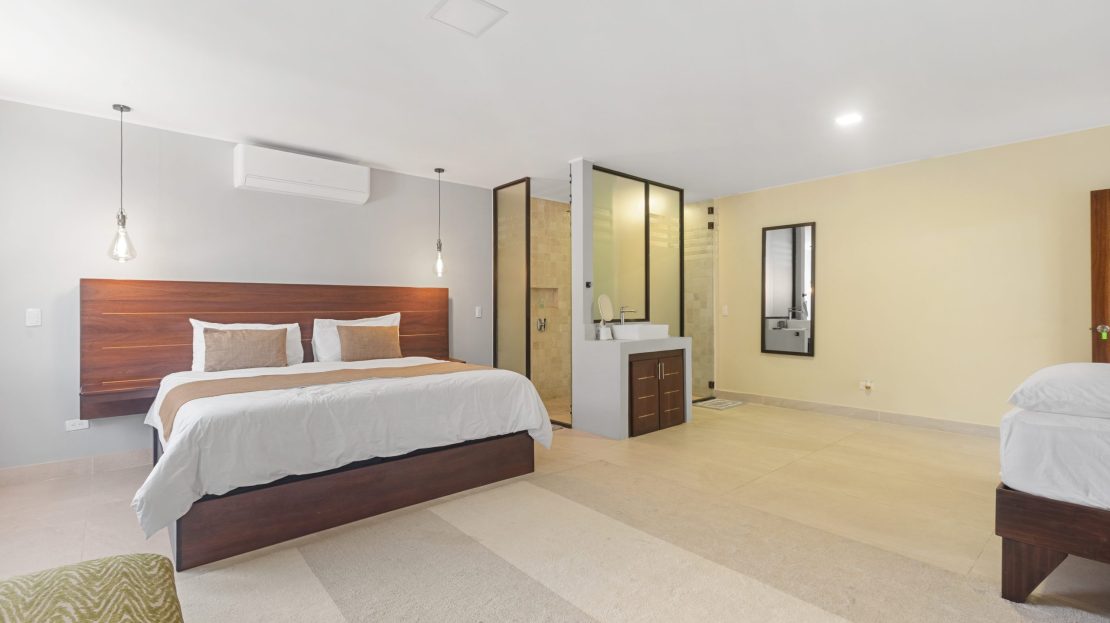 La segunda planta está pensada para el confort y la privacidad. Cuenta con ocho habitaciones cuidadosamente diseñadas, todas con baño privado, ofreciendo un nivel de comodidad ideal para familias grandes o grupos. La habitación principal es un verdadero refugio personal, con un balcón privado que regala vistas encantadoras a la piscina, un espacio perfecto para comenzar el día con calma o desconectarse al atardecer.
