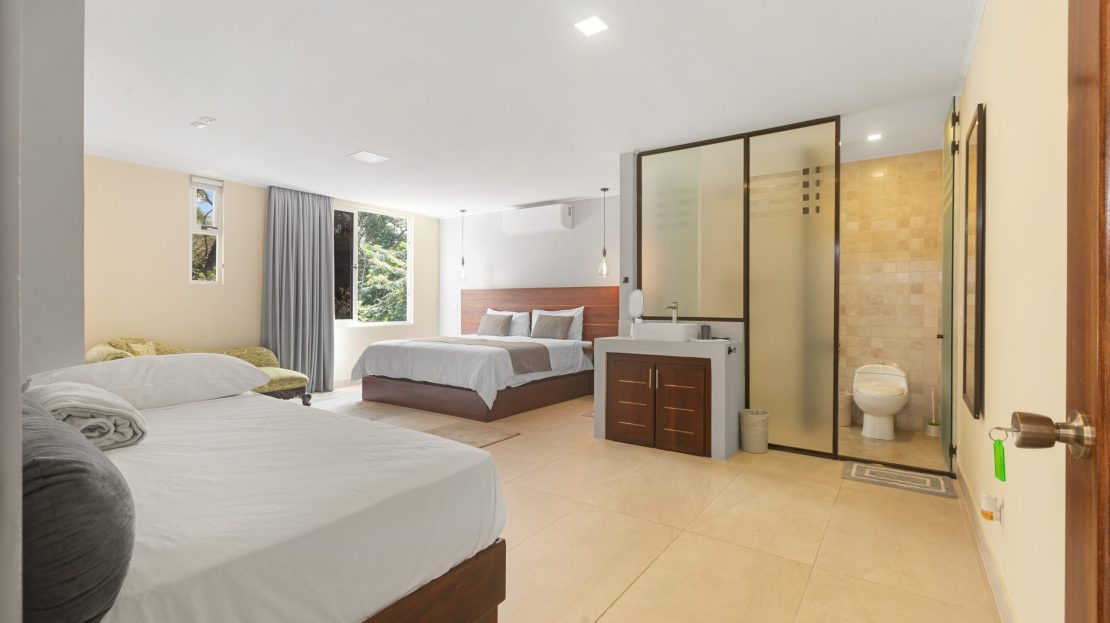Casa Sundeck truly shines outdoors, where the lifestyle of Jacó comes alive. The impressive 6 x 12-meter swimming pool is surrounded by a spacious sun deck, inviting you to relax, recharge, and enjoy Costa Rica’s warm climate year-round. Outdoor bathrooms near the pool add an extra level of comfort and practicality.