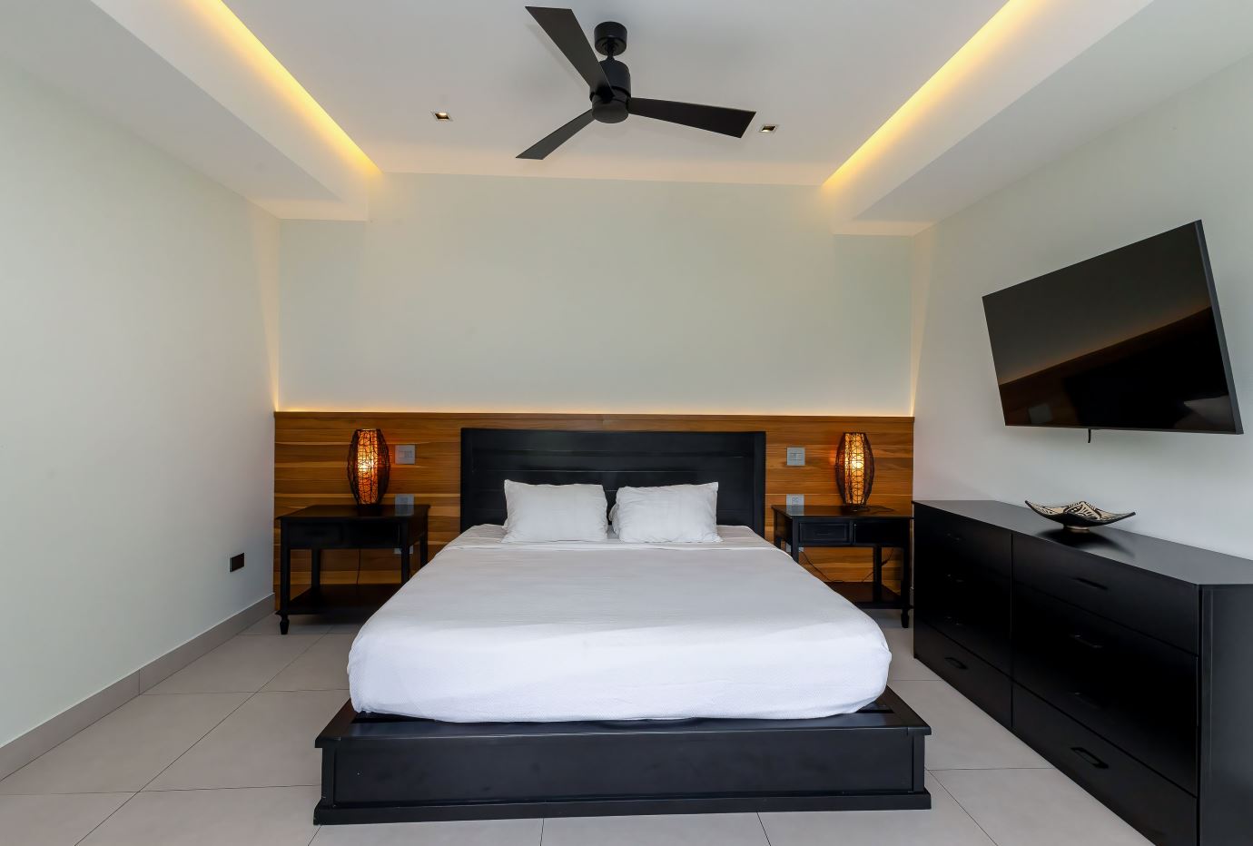 En el exterior, encontrarás una hermosa piscina privada de tono azul profundo, ideal para refrescarse y disfrutar del clima tropical. Los jardines tropicales cuidadosamente diseñados crean un ambiente de paz total. Además, el área de BBQ techada es perfecta para reuniones al aire libre o cenas tranquilas rodeadas de naturaleza.