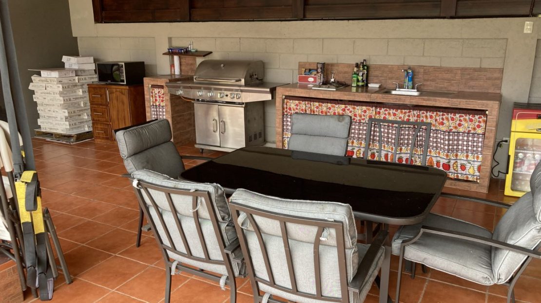 The home features three bedrooms, two full bathrooms, a large patio, rancho for entertainment, gym, wine storage, and is located just 5 minutes from supermarkets, pharmacies, bookstores, restaurants, hardware stores, Tilaran Cathedral.