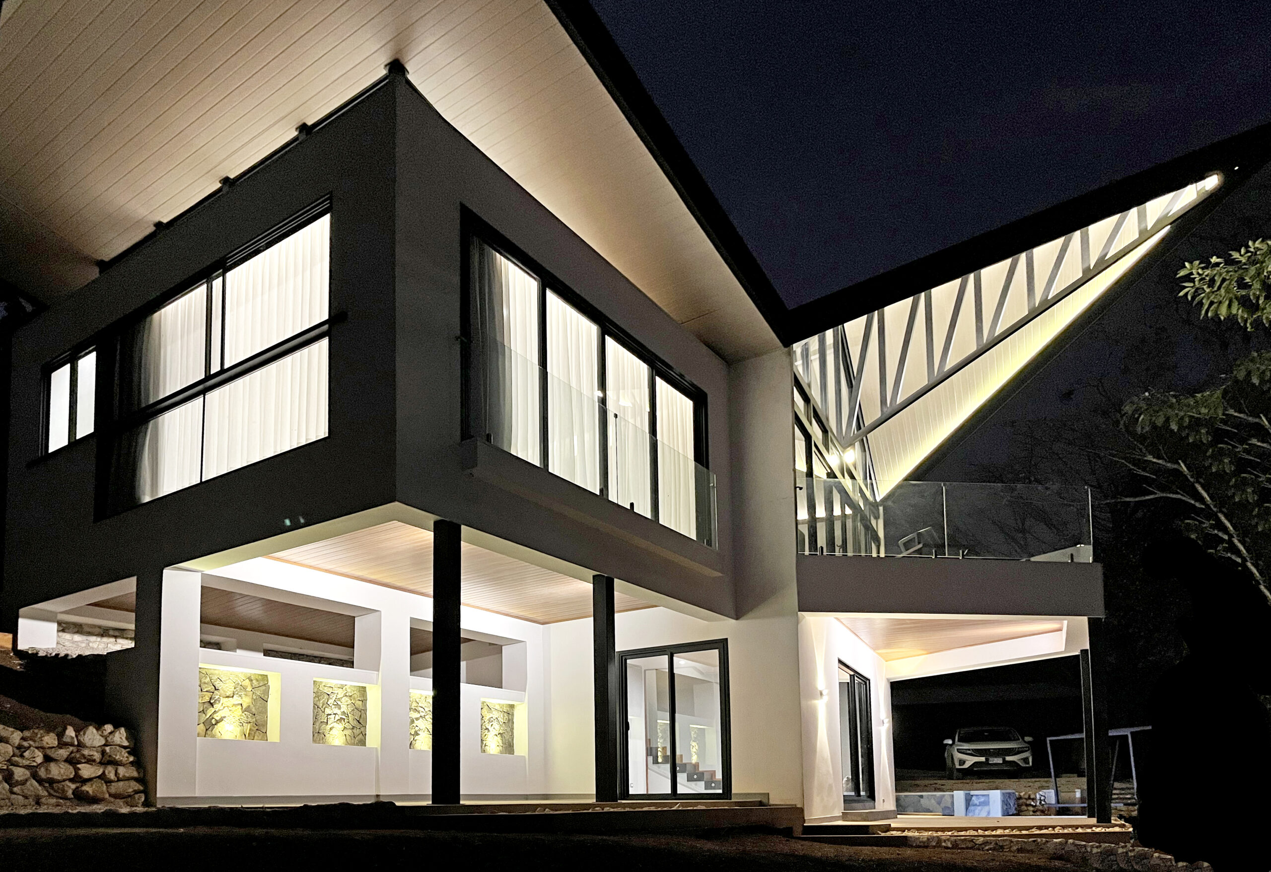 The villa’s exterior shines with elegance. With clean lines and large glass facades that allow natural light to enter the interiors, creating a warm and inviting atmosphere. The highlight of this stunning house is its infinity pool, which blends effortlessly with the azure horizon, creating a serene haven for leisure and enjoyment.