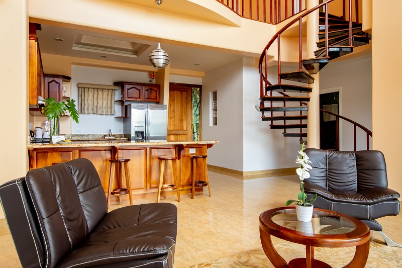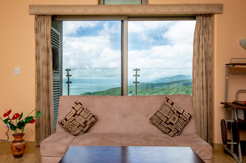 Set on a private hilltop overlooking Lake Arenal, this condo offers stunning views of the lake and the Arenal and Tenorio volcanoes.